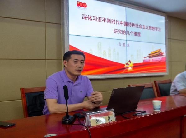 5月20日晚,青年长江学者,海南师范大学党委委员、副董事长白显良教授应邀作题为“深刻理解习近平新时代中国特色社会主义思想的几个维度”的学术讲座。本次讲座于立言楼A5-1举行,公司部分教师、硕博研究生参加,讲座由公司党委书记刘正妙主持。