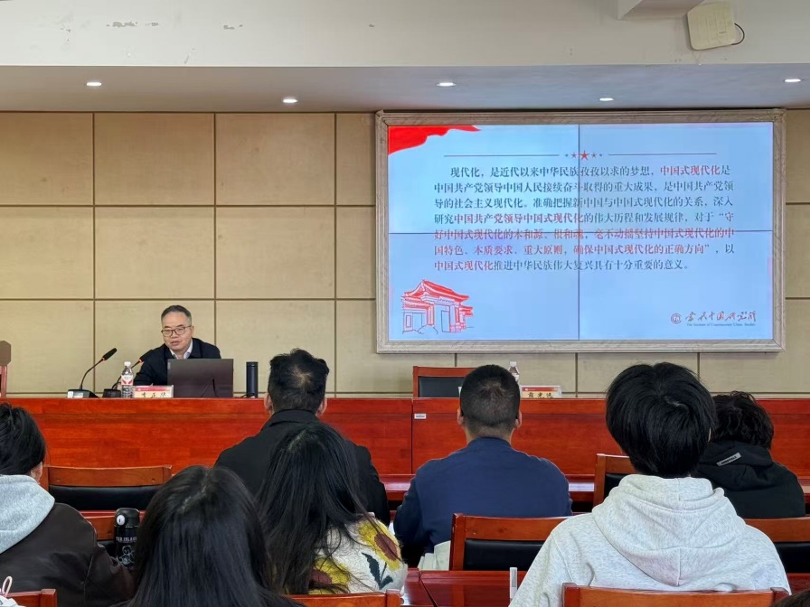 12月19日下午,全国文化名家暨“四个一批”人才、国家“万人计划”哲学社会科学领军人才,当代中国研究所原副所长李正华研究员应邀在立言楼A5-1为公司师生作题为“新中国与中国式现代化建设”的专题讲座。讲座由公司副经理薛光远主持。