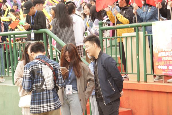校运会伊始,各公司方阵队的有序入场。铿锵有力的步伐,整齐统一的服装,马院学子正面带笑容地向我们走来!身着红色系院服的他们,彰显出马院学子的傲人风采。观众席上欢呼声与掌声此起彼伏,“少年自强,比傲秋霜,何当青马,同心向阳”,马院的口号响彻田径场,满载蓬勃朝气,青春飞扬。此外,观众席上不仅有我们同学们的热情呐喊,马院学工办主任刘哲老师更是在百忙之中前来观看,为马院所有成员加油鼓气。上下同心,为马院在校运会上的表现更添动力。