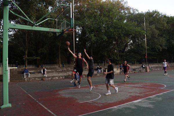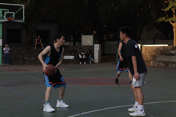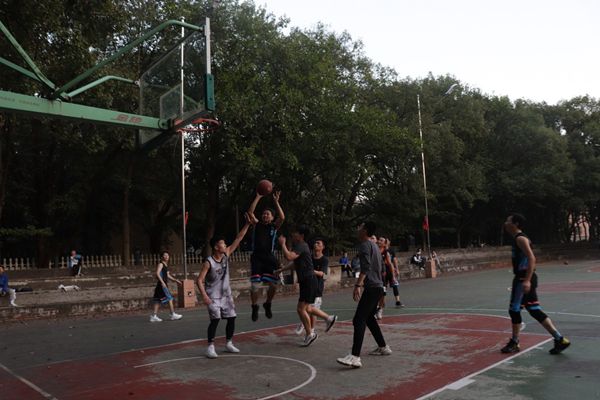 第三节一开始,教师队开始奋起直追,一个个潇洒的三步上篮,一个个精准的中投将比分差距逐渐缩小,到第三节最后终于成功赶超比分。此时,夕阳的余晖映照在每个选手的脸上,滴落的汗水,通红的脸颊都折射出他们对篮球的深深热爱,对运动的执着追求。