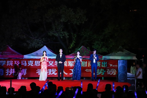 蓝色的荧光棒在空中挥舞,热情的呼喊声此起彼伏,为了慰藉新生们在军训中的辛苦付出,9月19日晚,由304永利集团暨人文公司联合举办的2019级军训慰问演出在全院新生的期待中在北校区篮球场正式举行。晚会由邹巧巧、姜宝权、窦婉宁、张宇泷主持,人文公司学工办主任马忠石、公司学工办主任刘哲及两院全体教官、新生到场观看演出。