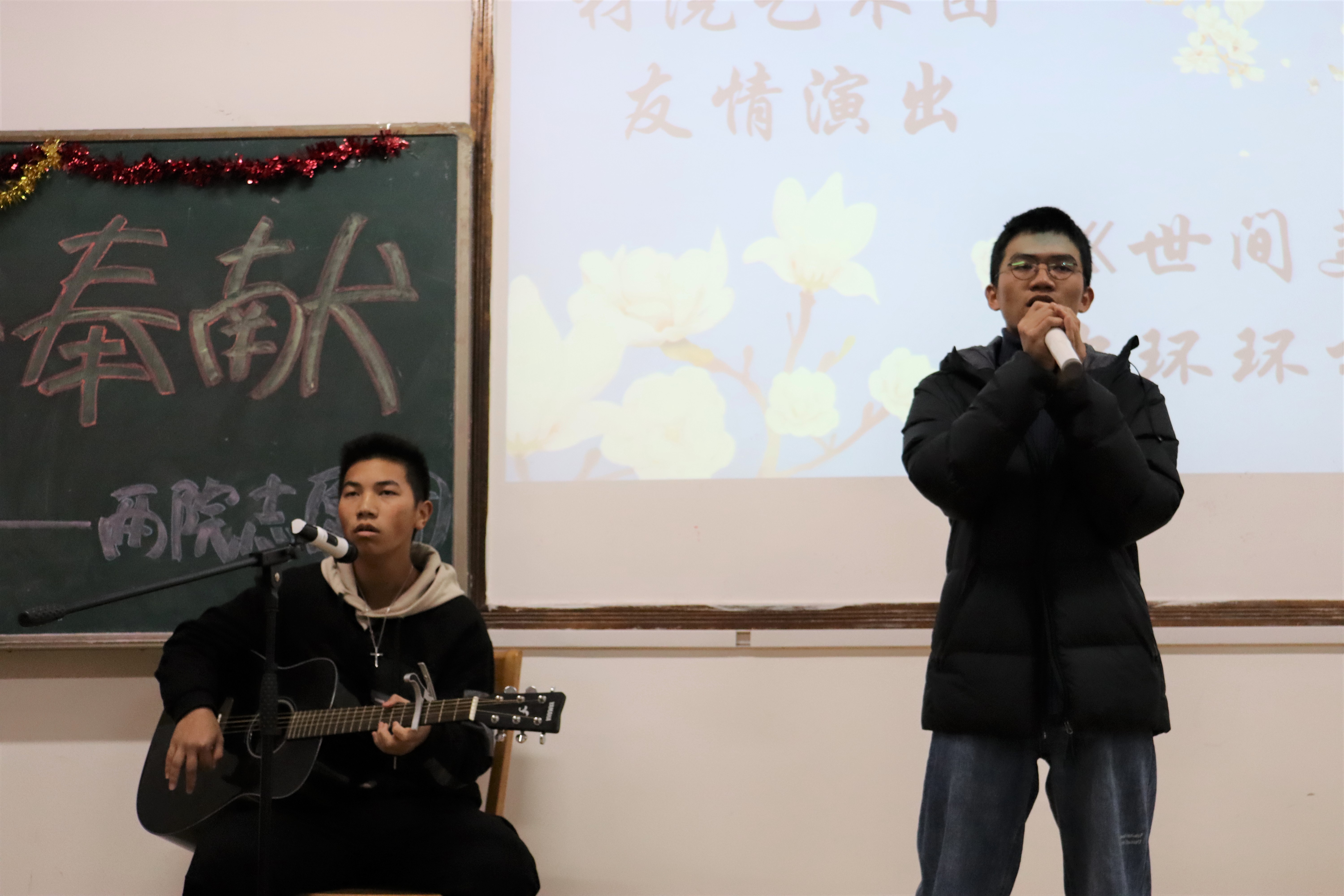 伴随着轻松愉快的介绍视频的播放,大会正式拉开了帷幕。活动前期,充满生机与朝气的朗诵《青春之歌》、温暖有爱的手语表演《最美的期待》、丰富详细的两院志愿团常规志愿活动介绍和美妙动听的吉他弹唱《世间美好与你环环相扣》接连展现在大家眼前,表演和音乐完美融合,现场欢声笑语不断,观众们的掌声和欢呼声不绝于耳。一个激烈的游戏环节过后,活动进行到了后期,小品《献血》笑中带泪,泪中有爱,传递出了志愿者的爱心与感恩,令人感动不已。