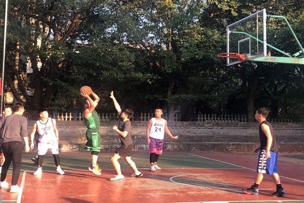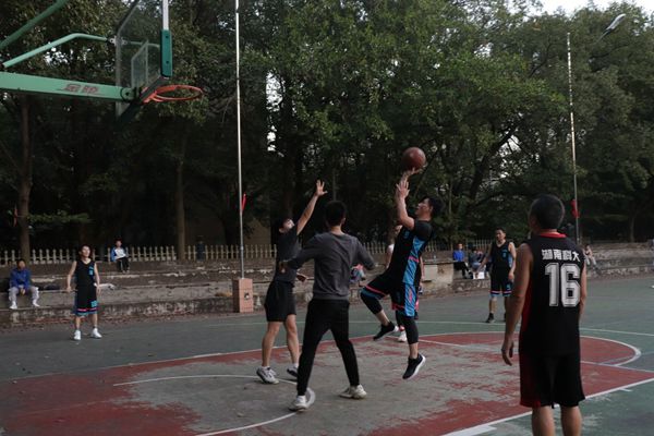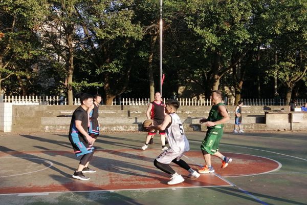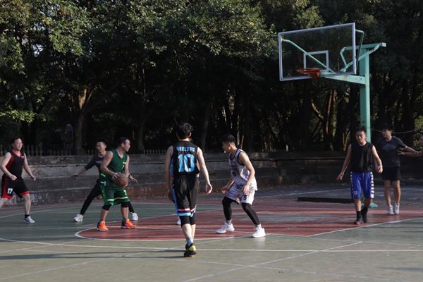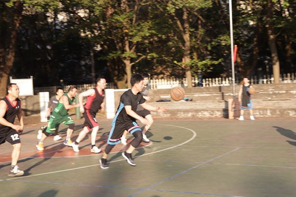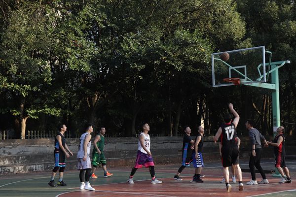 第三节一开始,教师队开始奋起直追,一个个潇洒的三步上篮,一个个精准的中投将比分差距逐渐缩小,到第三节最后终于成功赶超比分。此时,夕阳的余晖映照在每个选手的脸上,滴落的汗水,通红的脸颊都折射出他们对篮球的深深热爱,对运动的执着追求。