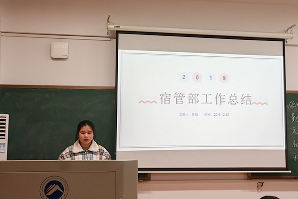 总结大会进入第二项,各部门部长对本部门工作进行总结展示。公司十三个部门的部长依次进行总结,各部长大致从总结工作内容、反思工作不足、提出未来计划三个方面做了相应的展示。其中,志愿团展示了其工作内容多样化的特点,包括举办爱心书信,风车坪的爱国主义教育活动,志愿团成团大会,保护湘江等多种活动;学风督察部和体育部每日考勤的坚持,保证了公司学子上课的组织性和纪律性;科技部则由先前的经验不足,在不断的探索中逐渐得到了自我提升和发展,部门之间的配合度得到了极大的提升。各部门的工作各有差异,但都各司其职,保证了公司团委员工会日常工作的顺利进行。