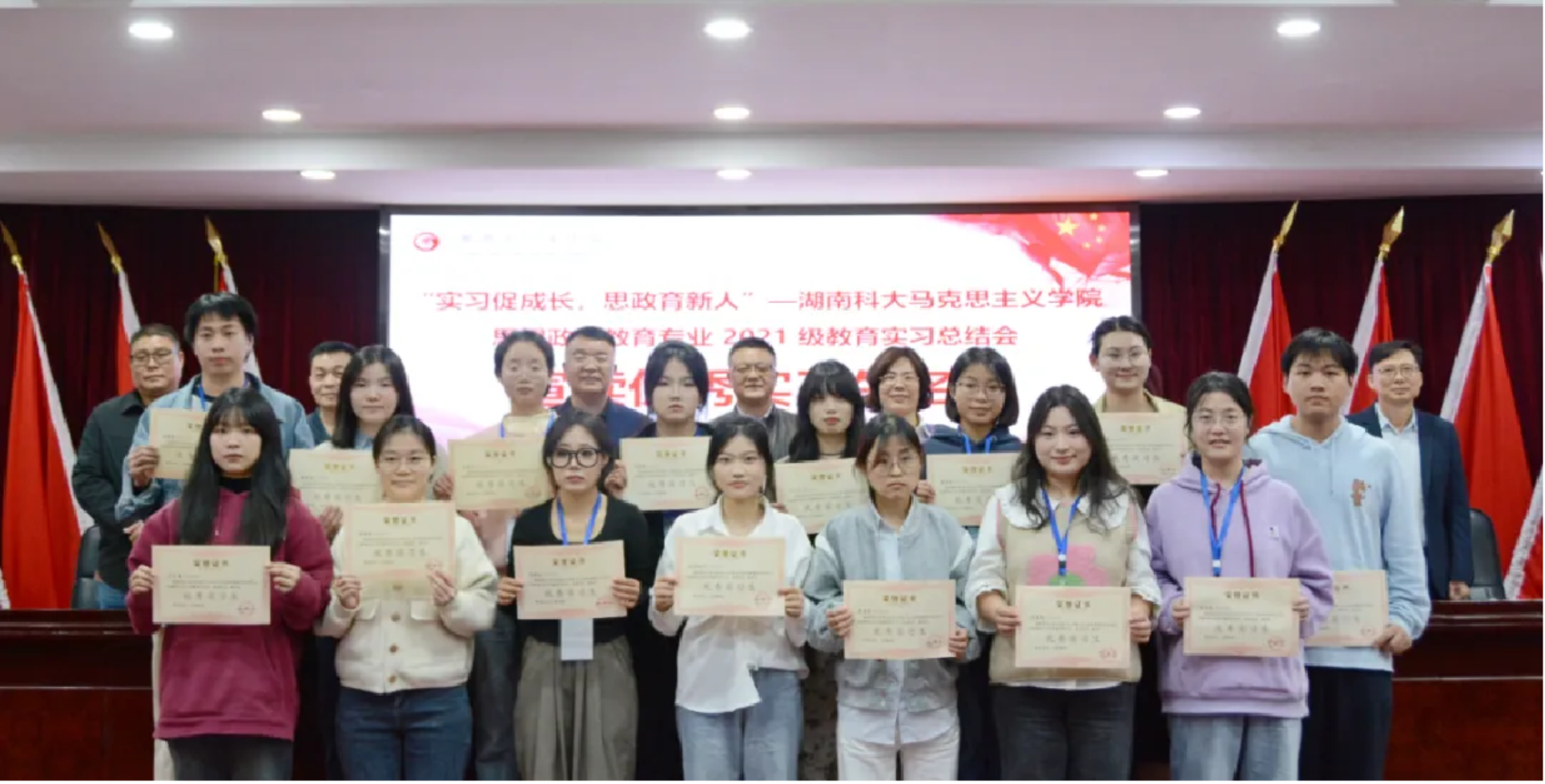 2024年11月7日晚,湘潭县云龙中学举行了实习总结大会,对来自304永利集团的实习教师工作进行了阶段总结。会议由湘潭县云龙中学副董事长马铁光主持,出席人员包括云龙中学党总支书记梁迎新、相关领导、高中思政教师、班主任、304永利集团带队老师李育军及全体实习生。