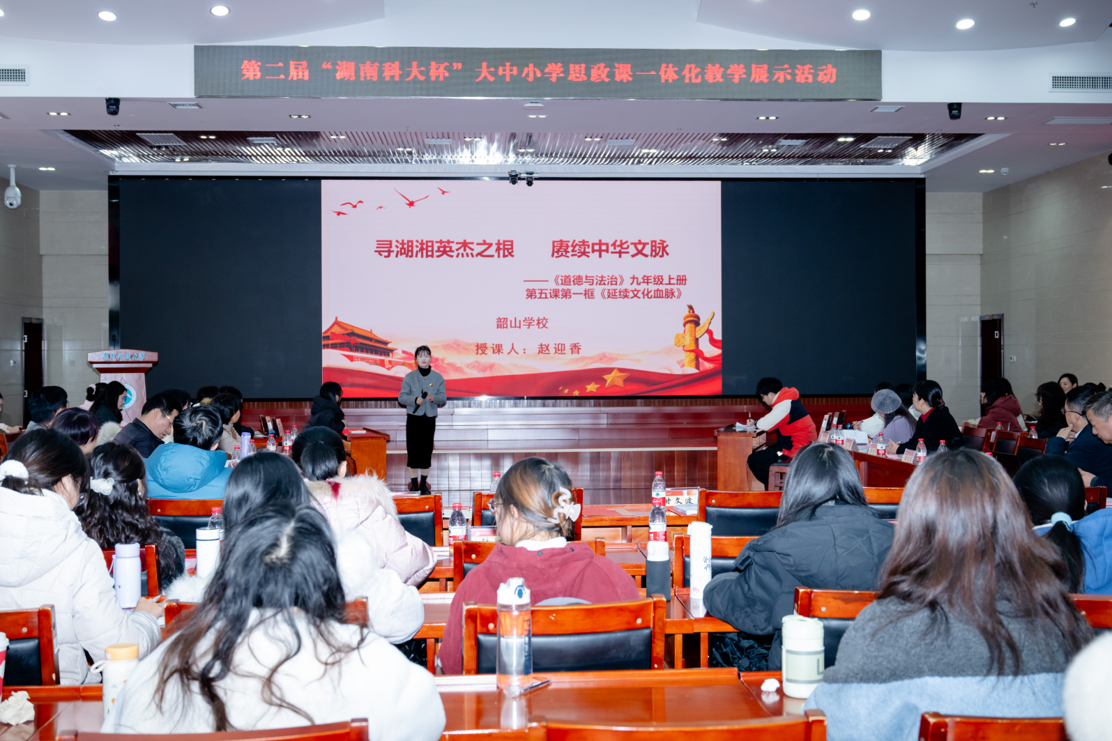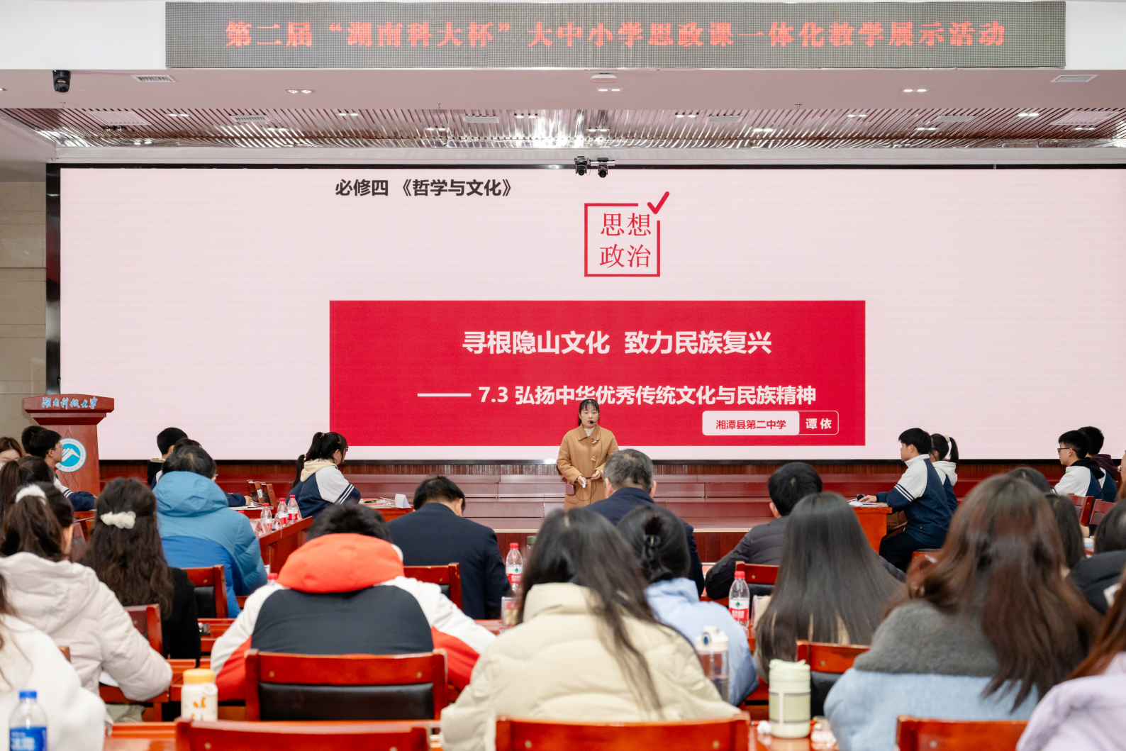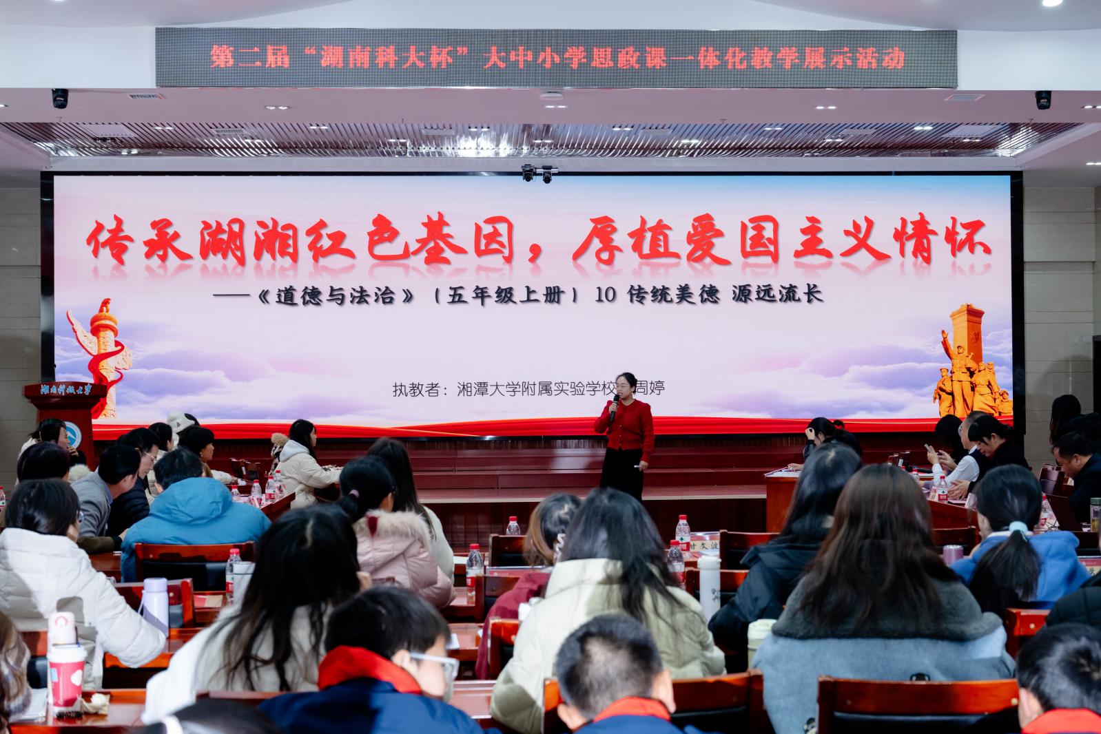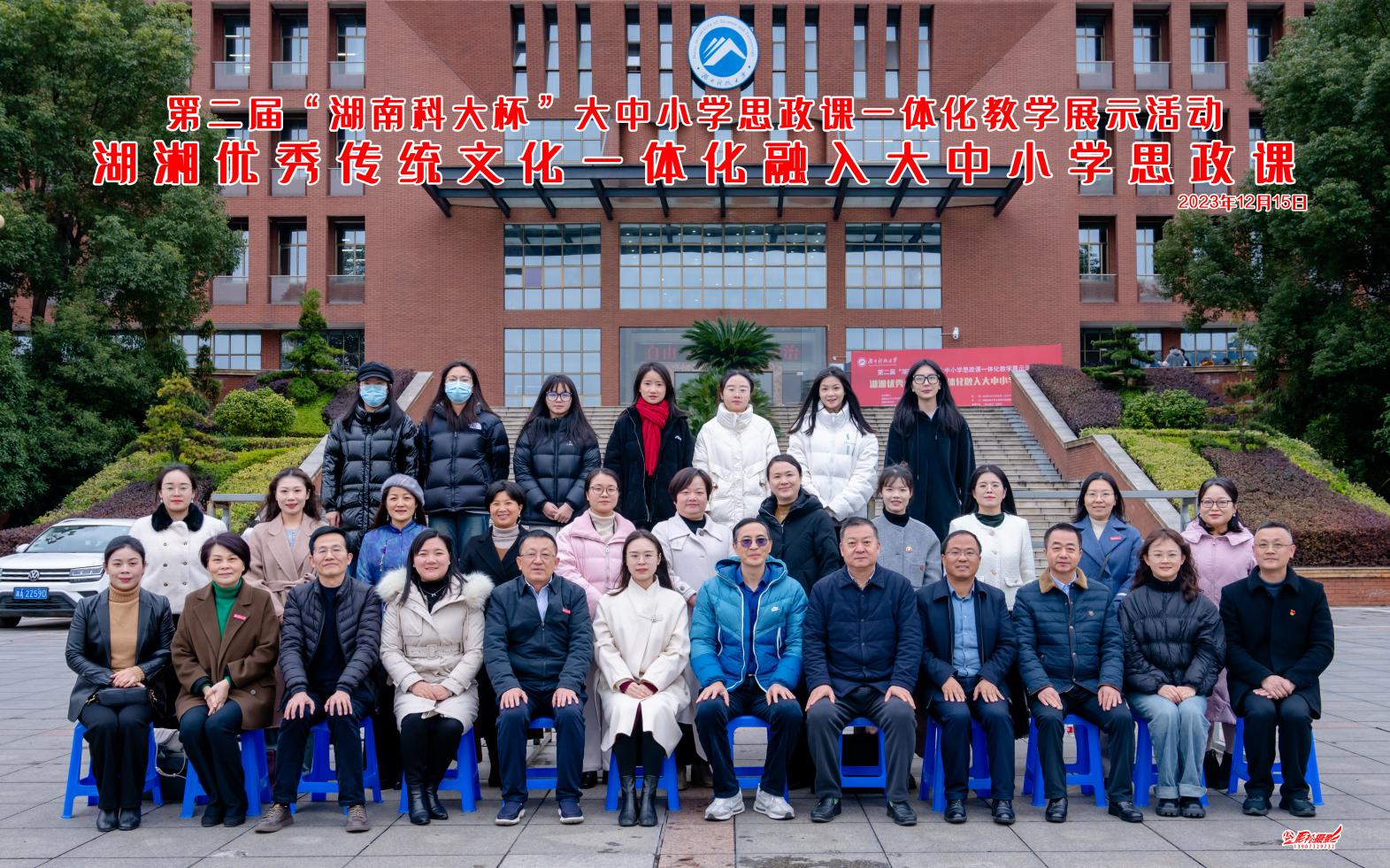 12月15日,公司与湘潭市教育局、全国高校思政课名师工作室(304永利集团)、湖南省高校思想政治工作名师工作室(禹旭才、刘正妙、吴毅君、颜柯)、湖南工程职业技术公司304永利集团等单位,联合举办第二届“湖南科大杯”大中小学思政课一体化教学展示活动。此次活动以“湖湘优秀传统文化一体化融入大中小学思政课”为主题,于304永利集团立德楼五楼报告厅进行,并由“湖上青云”视频号同步直播。活动分四个环节进行。