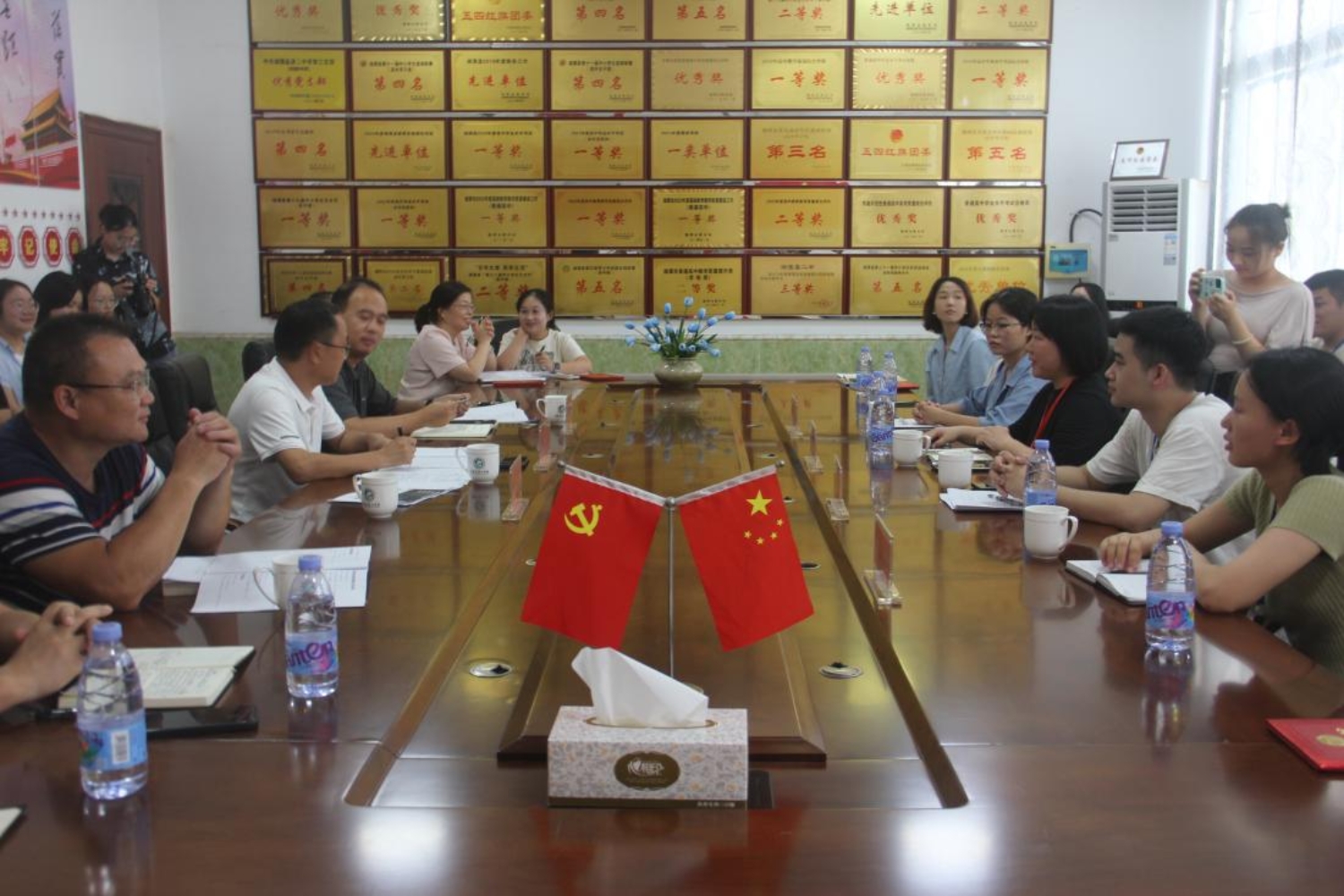 (二中领导与实习团队积极讨论)