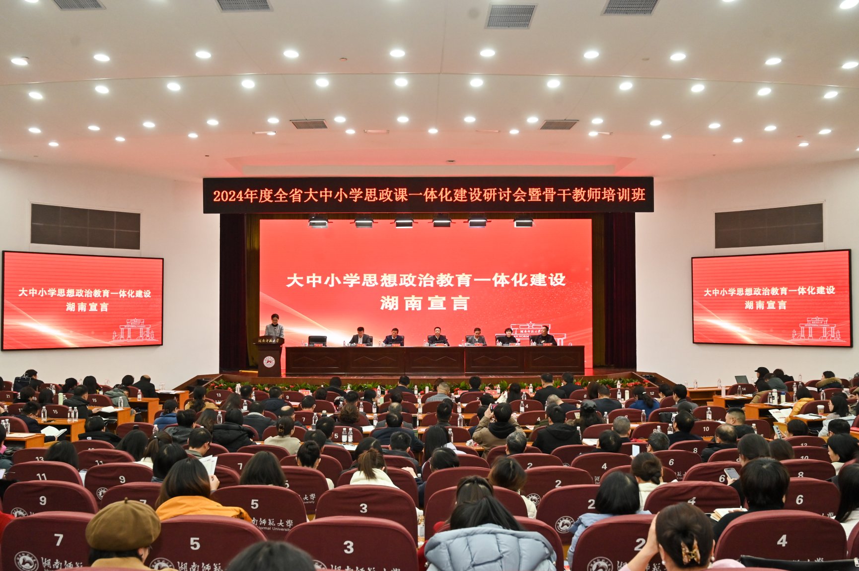 12月27日,2024年度全省大中小学思政课一体化建设研讨会暨骨干教师培训班在长沙举行。本次研讨会由省教育厅主办,旨在深入贯彻落实党的二十届三中全会、全国教育大会精神,深入推进大中小学思政课一体化建设,更好发挥思政课在落实立德树人根本任务中的关键作用。省委教育工委委员,省教育厅党组成员、副厅长孙传贵出席会议。会议成立了湖南省大中小学思政课一体化建设指导委员会,发布了《大中小学思想政治教育一体化建设湖南宣言》。教育部大中小学思政课一体化建设指导委员会专家指导组组长秦宣作了专题报告。公司党委书记刘正妙、副经理黄爱英、学科教学·思政硕士点负责人彭立春参加了会议。会上,黄爱英被聘为湖南省大中小学思政课一体化建设指导委员会专家指导组成员;公司作为全省普通高校唯一代表,由刘正妙作成果交流发言,发言题目是“依托湖湘优势,打造有全国影响力的大中小学思政课一体化‘湖南品牌’”。刘正妙的发言不仅展示了公司在大中小学思政课一体化建设方面的成果,也为全省乃至全国的大中小学思政课一体化建设提供了宝贵的经验和启示,受到与会领导、专家和同行的一致好评。