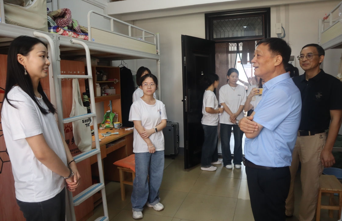 新生宿舍崭新的布置和青春洋溢的面庞都让人感受到蓬勃的朝气。在宿舍中,领导们首先询问了研究生们对新环境的适应情况。“从家乡来到这里还习惯吗?”“对校园环境有没有什么不适应的地方?” 这些贴心的询问,让初来乍到的新生们倍感温暖。领导和老师们查看宿舍的床铺是否舒适,检查生活设施是否完备。老师们还细心地提醒新生们注意宿舍安全,让新生们在生活中能时刻保持警惕。领导们与老师们鼓励新生研究生们要尽快找到研究生学习模式,学会自主探索研究的学习方法,充分利用昭潭书院和本部图书馆的学习资源,端正主动探究的学习态度,要主动和研究生导师沟通交流。