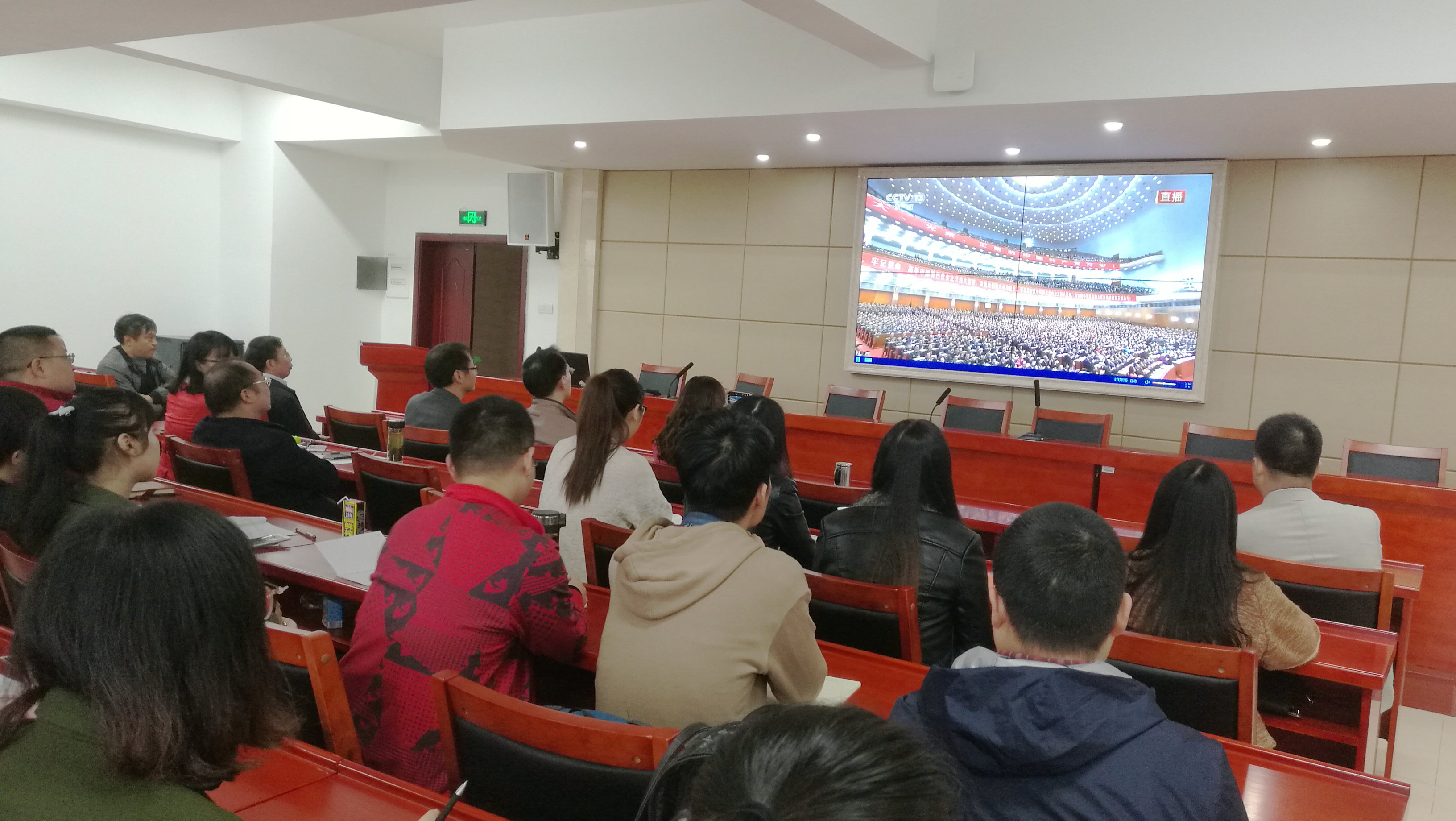 为了落实公司党委的要求,及时了解与贯彻中国共产党治国理政的新理念、新思想、新战略,发挥高校思想政治理论课在老员工思想政治教育工作中主渠道、主阵地作用,发挥马克思主义理论工作者在理论研究和社会服务中的引领作用,10月18日上午,公司党委组织没有上课的全体师生在文科楼A5-1会议室集中收看了中国共产党第十九次全国代表大会开幕式盛况。