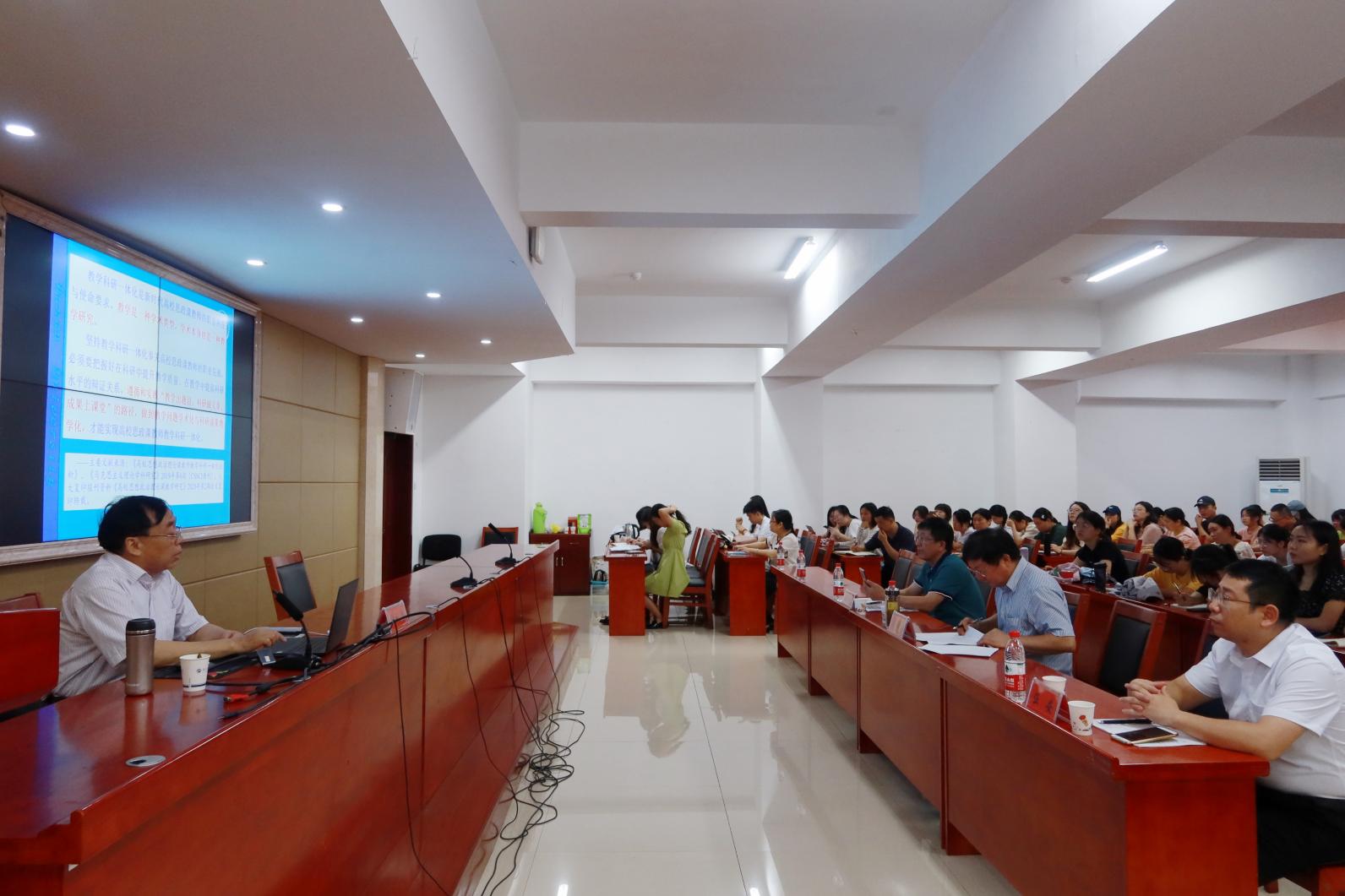 教而不研则空,研而不教则浅。围绕高校思政课教师应如何处理教学与科研的互动问题,柳礼泉教授作了题为《研教一体:思政课教师职业发展的理性自觉与实践路径》的专题报告。报告从立业与强基、相济与互促、相克与相生、相融与相长四方面,深入浅出地指出教学科研兼备是高校思政课教师的职责所在,教学科研一体化事关高校思政课教师职业发展,强调要正视教学与科研的矛盾以创设教师全面发展的条件,并提出高校思政课教师教学科研一体化的实践路径。吴怀友教授对柳教授的报告做出高度评价,认为柳教授全面贯彻落实、模范践行了习近平总书记的讲话精神,勉励思政课教师要对自己的工作性质、责任使命有清醒认识,要自立自强、科研并重,在教书育人与科研创新的统一中争做大先生。