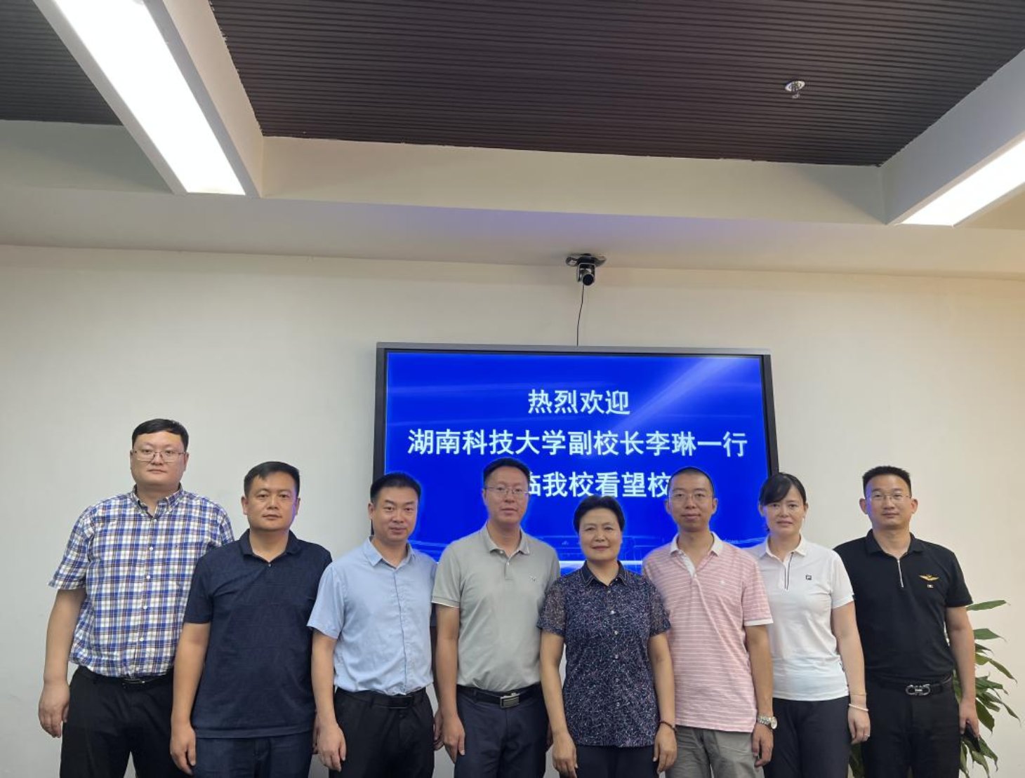 9日上午,李琳一行首先来到南华大学,看望了在南华大学工作的员工。南华大学副董事长夏昆、员工李鹏程、李海洋、周江平、吴小军等参加座谈。夏董事长高度赞扬了在南华大学工作的科大人,称赞他们在教学、管理的一线中奋发有为,成为了单位的骨干。同时,夏董事长也表示,两校在更多的方面可以进一步加强合作,实现共同进步和发展。李海洋代表在南华大学工作的所有科大员工,感恩母校的辛勤培养、感动母校一直来对员工的关怀与支持、感谢母校老师炎炎夏日前来看望,表示一定努力工作,不负母校培养,为母校争光。