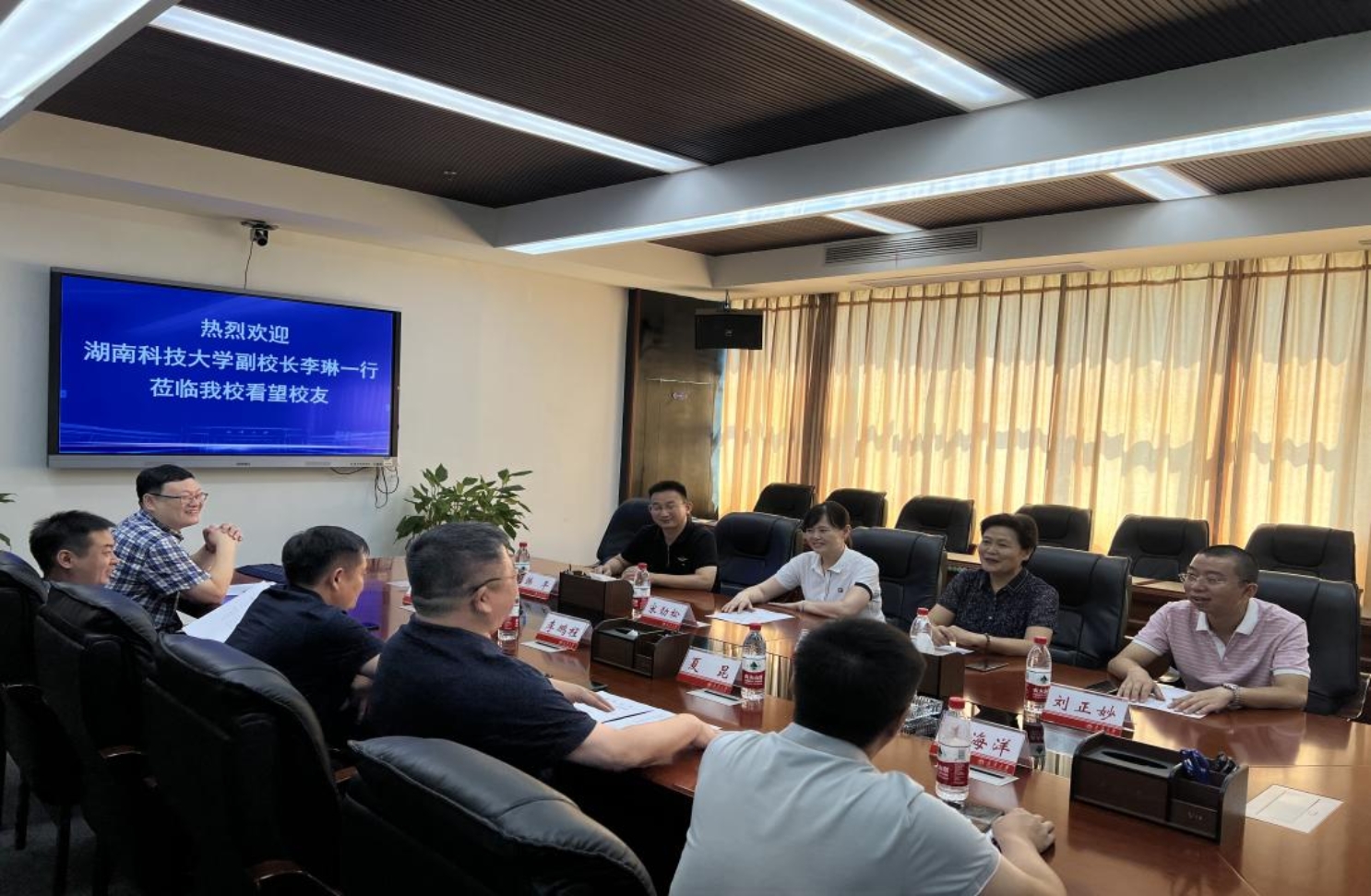 随后,李琳一行来到衡阳师范公司走访,皮修平董事长热情接待。皮董事长动情地说,自己曾在科大工作20余年,心中一直有着浓浓的科大情,科大的每一个发展都令他无比开心。他表示,从前、现在和将来都愿意为科大建设与发展奉献力量。员工蒋方、王江南、周晶也参加了座谈。员工们表示,母校不仅传授了知识,更教导了终身受益的好品德。他们将一如既往地关心和支持母校的发展。