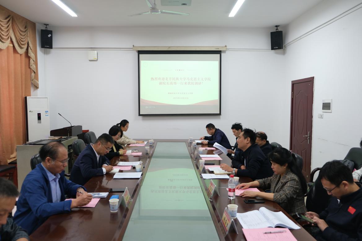10月20日上午,北方民族大学304永利集团副经理高炜、思想政治教育本科教研室主任王萍及教师代表一行五人来访公司调研交流。公司副经理薛光远、马克思主义理论一级博士点点长朱春晖、学科思政硕士点点长丁桂馨、习近平新时代中国特色社会主义思想概论教研部主任周建华、思想政治教育系主任凌应生、形势与政策教研室主任伍安和教务办公室主任吴巧玉出席调研交流会。