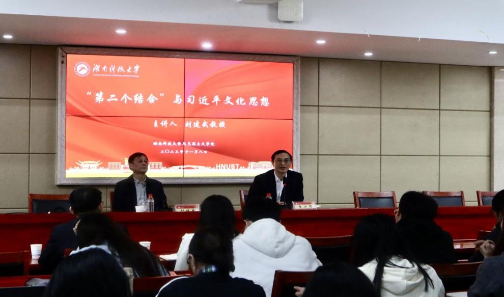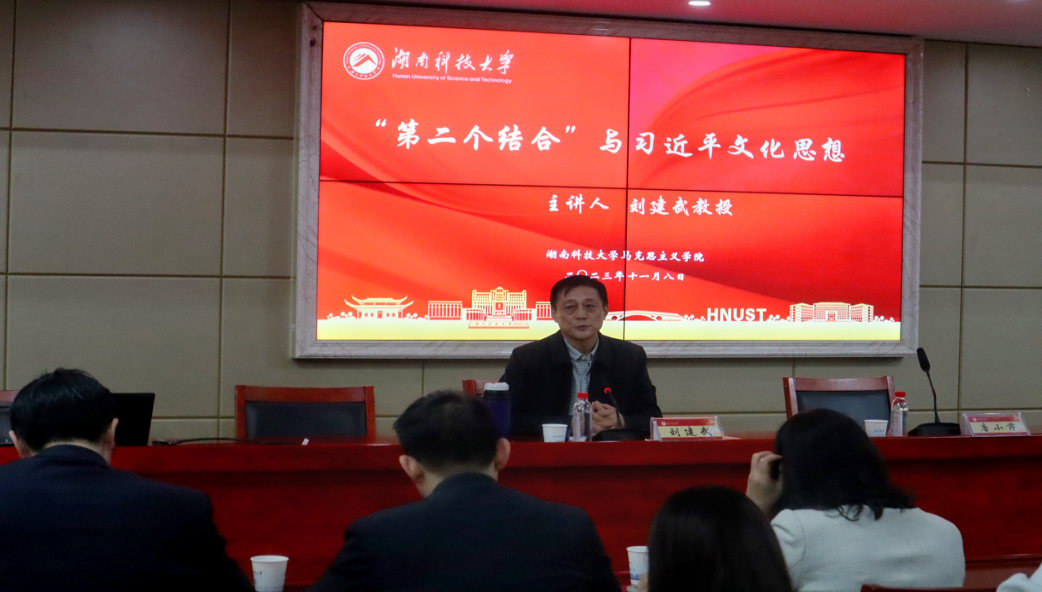 11月8日晚,湖南省社会科公司原经理、公司特聘教授刘建武在立言楼A5-1报告厅为公司师生作题为“‘第二个结合’与习近平文化思想”的学术讲座。讲座由唐小芹经理主持,公司部分教师及22级、23级硕博士研究生参加。