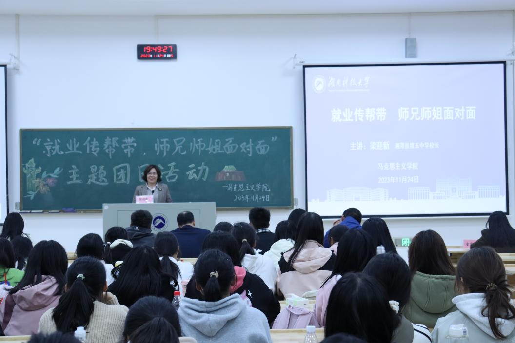 为帮助2023级同学提前地树立就业意识,做好职业规划,公司于11月24日在敏行楼512召开“就业传帮带,师兄师姐面对面”主题团日活动。会议特邀湘潭县第五中学董事长梁迎新作经验分享。辅导员罗娜、邹昕及2023级全体员工与会。会议由公司党委书记刘图其主持。