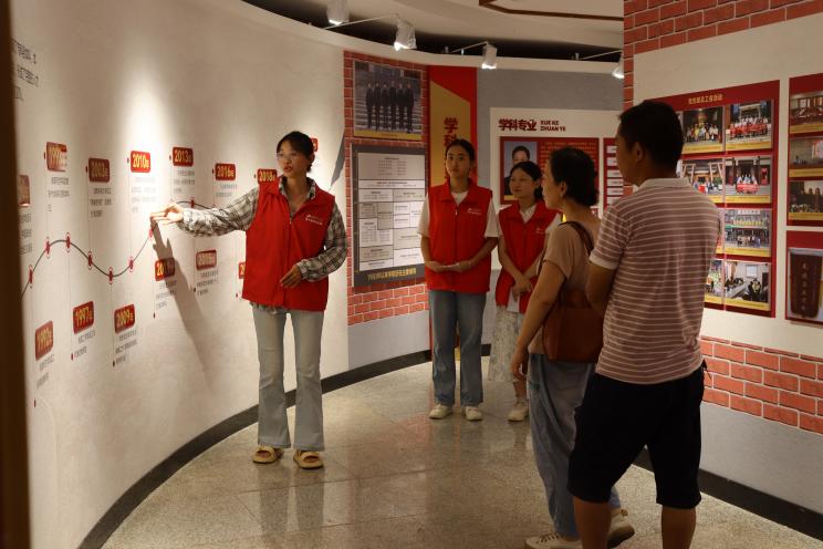会议结束后,薪火“湘”传的宣讲员带领家长们参观公司成果展览室和院史馆。