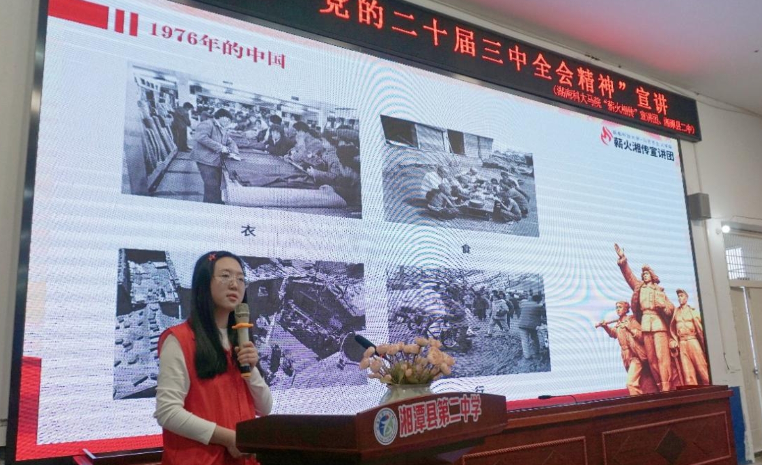 12月11日,公司党委副书记刘图其与邹昕老师带领公司“薪火湘传”宣讲团走进湘潭县二中学开展“党的二十届三中全会精神”理论宣讲活动。