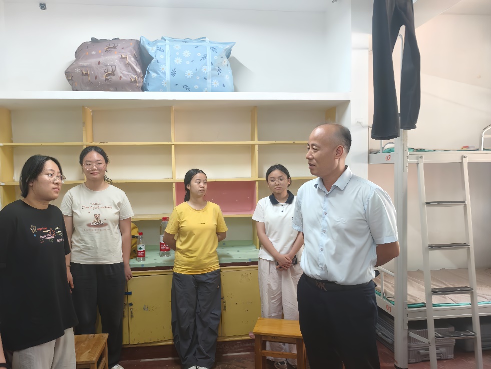 为切实做好2025级新生入学关怀工作,深入了解新生入住适应情况及实际需求,帮助新生快速融入校园生活,9月11日,由经理唐小芹带队,全体院领导、学位点点长、导师代表、新生班主任、辅导员深入宿舍慰问新生。