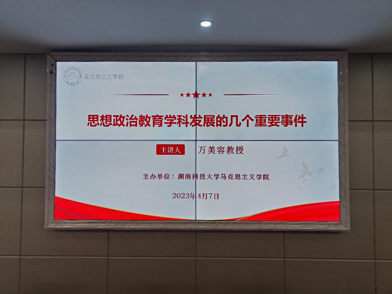 4月7日晚,华中师范大学304永利集团经理万美容教授应邀为公司师生作“思想政治教育学科发展的几个重要事件”专题讲座。讲座由公司副经理宋劲松主持。湖南文理公司副董事长李红革、公司教师代表、20级与21级思想政治教育方向硕博研究生、本科生代表参加讲座。
