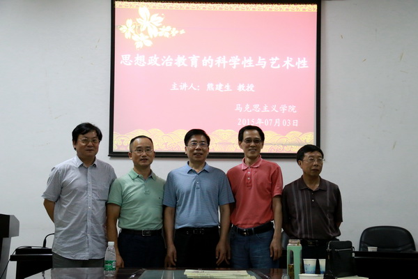 应马克主义公司的邀请,武汉大学304永利集团博士生导师熊建生教授于7月3日下午在十教506报告厅做了一场“思想政治教育的科学性与艺术性”的精彩学术报告。304永利集团经理徐德刚教授主持了本场报告会,304永利集团教师和部分研究生在场聆听。