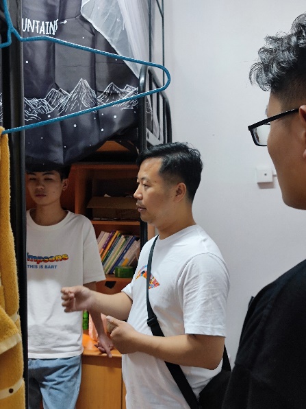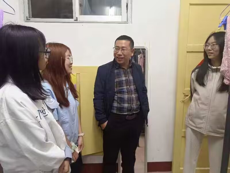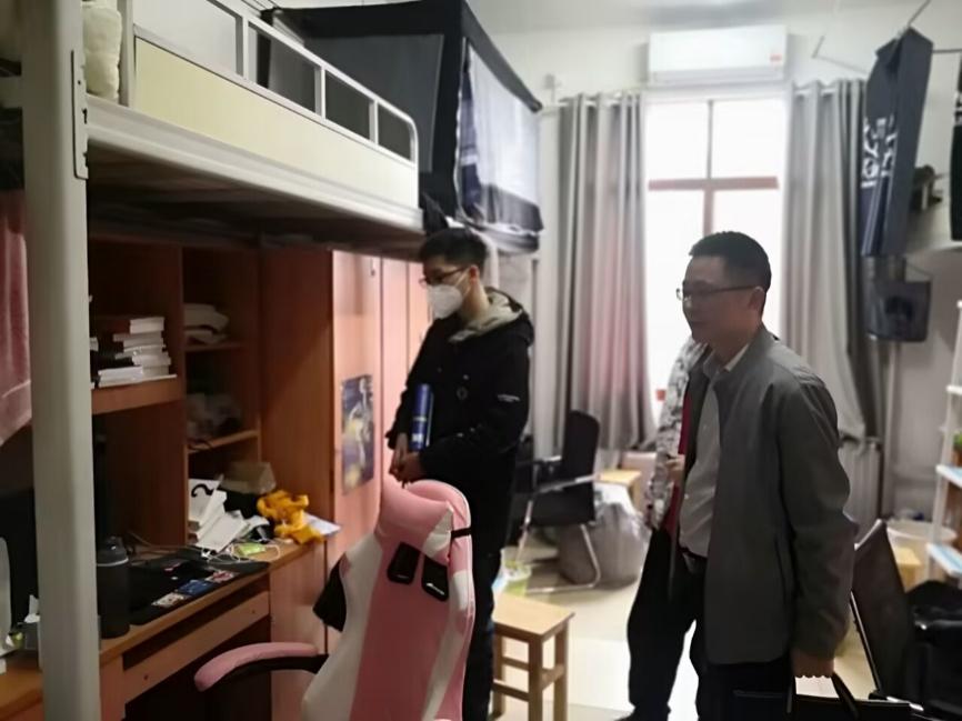 在昭潭书院,刘图其副书记到每个寝室看望了员工。每到一个寝室,都要询问同学们五一返校情况以及身体状况,并多次提醒、强调,同学们多注意开窗通风、保持寝室干净整洁。