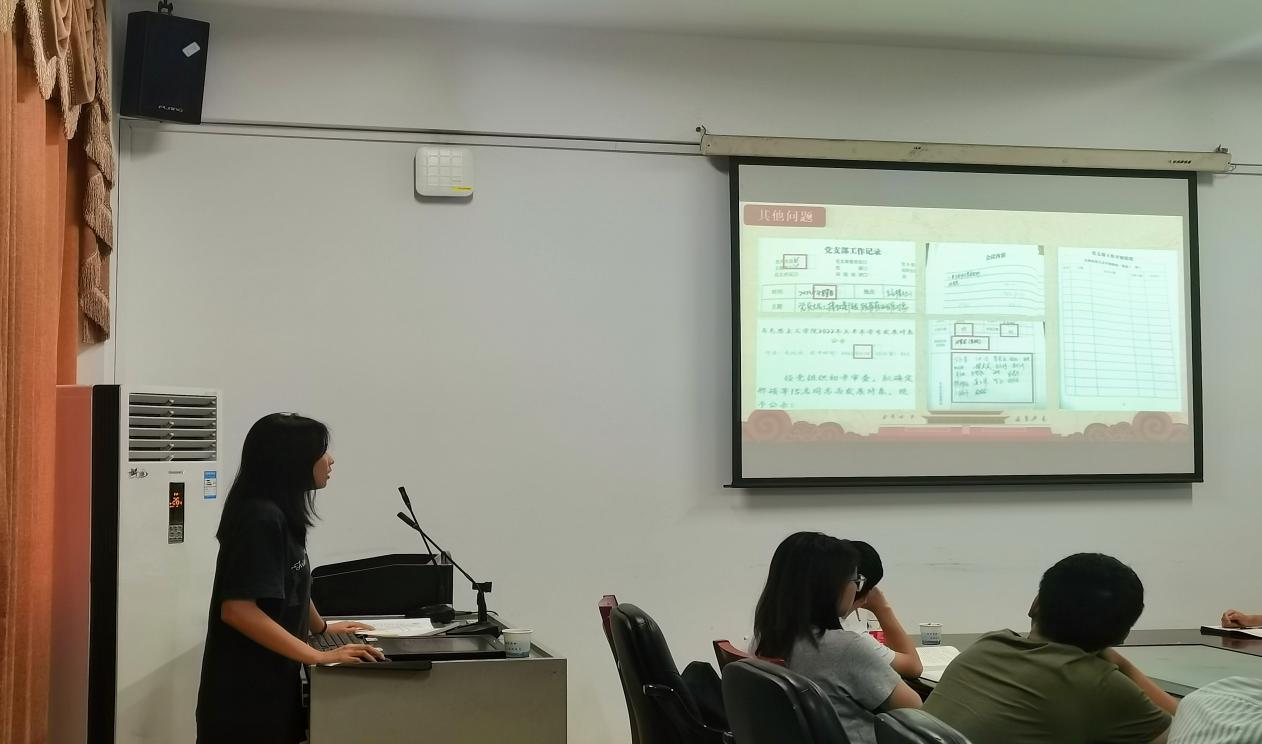 会上,刘图其结合支部工作记录检查及其存在的问题进行了点评。他在肯定各支部党建工作的同时,也指出一些支部存在的不足。他指出,规范支部党员大会的会议记录在党章、支部工作条例中都没有明确的规定。基层党建工作是促进中心工作的有力手段,落实基层党建工作考核机制是抓好党建工作、落实全面从严治党的重要举措,此次检查既是对各支部党建工作的一次摸底、也是各支部横向对比学习的一次机会。