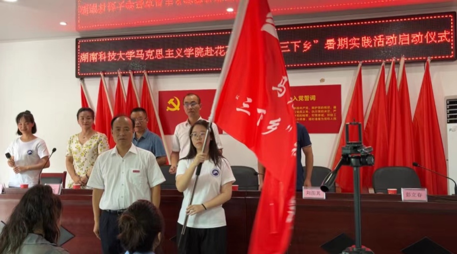 进行了授旗、成员代表表态以及表演《美好乡村》三句半节目、合唱《歌唱祖国》等环节。启动仪式结束后,彭立春博士为村党员上了《百年奋斗谋复兴,勇毅前行兴伟业》党课,三下乡成员到辣椒地里参加了劳动。
