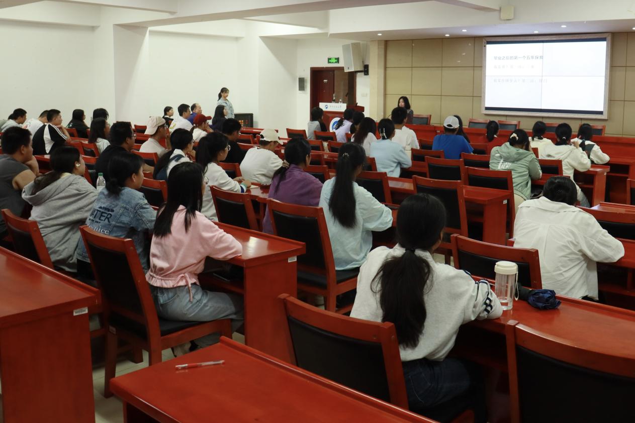 讲座伊始,张艳红以时间为脉络,围绕创业、婚育和自我成长三个方面,结合自己毕业的第一个五年规划与接下来的十年的规划,和同学们分享经验:一是大学要合理规划未来,敢想敢做敢拼,不给自己设限,明确发展目标的同时强健体魄;二是要懂得职场法则,学会观察;三是要内核强大,注重向上社交;婚育上,做好人生规划,践行合适的婚育理念。