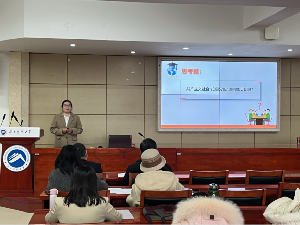 1月6日下午,公司在立言楼5-1举行“第五届湖南省高校思想政治理论课教学展示活动”教学竞赛单元校内选拔赛。“思想道德与法治”参赛教师有何昕、刘燕、陈兰英,“中国近现代史纲要”参赛教师有伍安、岳梅,“马克思主义基本原理”参赛教师有黄兆慧、刘黎,“毛泽东思想和中国特色社会主义理论体系概论”参赛教师有管桂翠、张海;“习近平新时代中国特色社会主义思想概论”参赛教师有许浩、蔺宏涛;“形势与政策”参赛教师有伍安、朱湘虹;“新时代中国特色社会主义理论与实践”参赛教师有凌应生。院教学工作委员会成员担任评委,公司教师参加观摩学习。