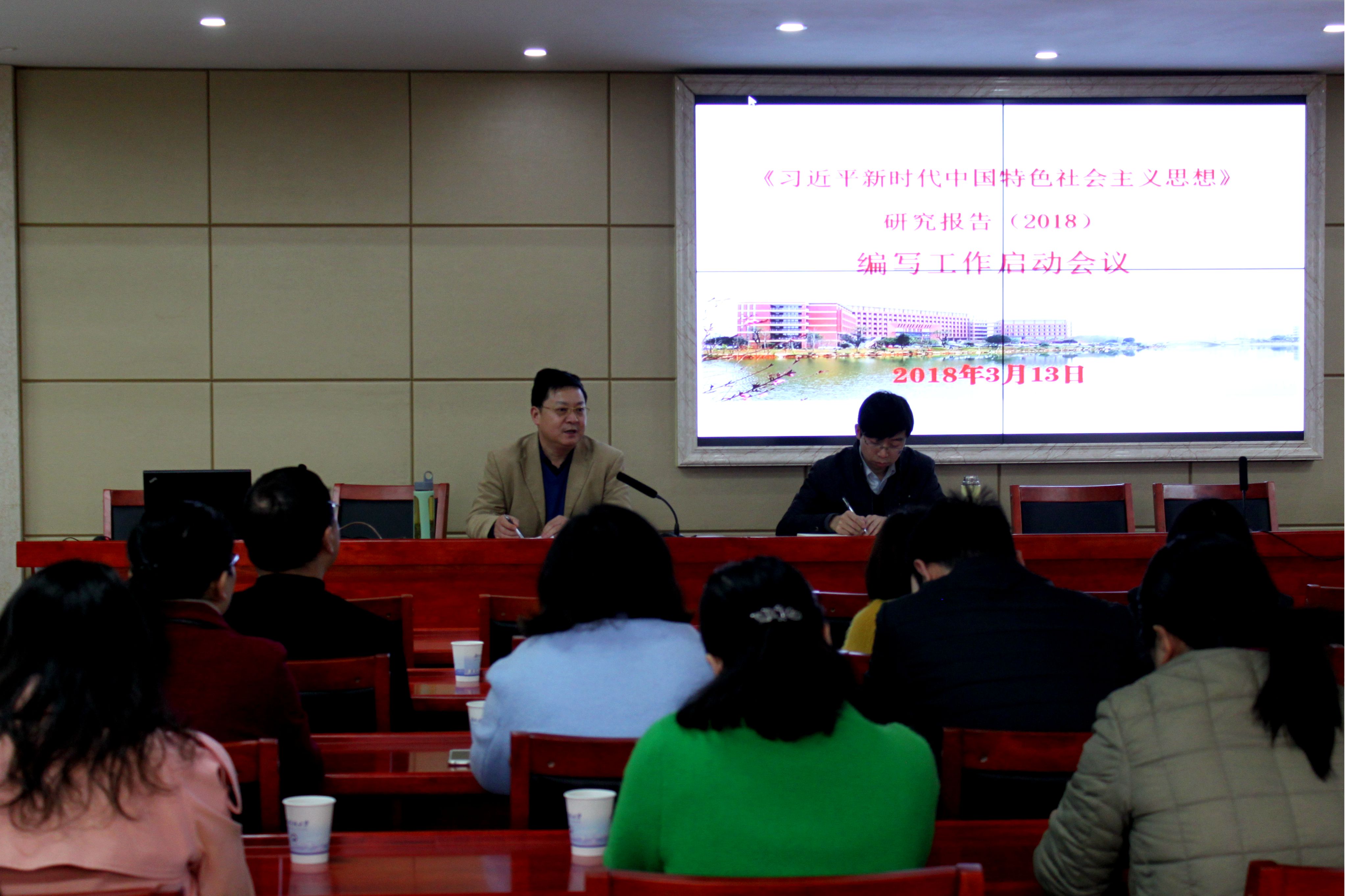 接着,吴怀友谈了编写习近平新时代中国特色社会主义思想研究年度报告的思路、要求,落实了组织领导、人员分工、编写要求、经费保障等工作举措。