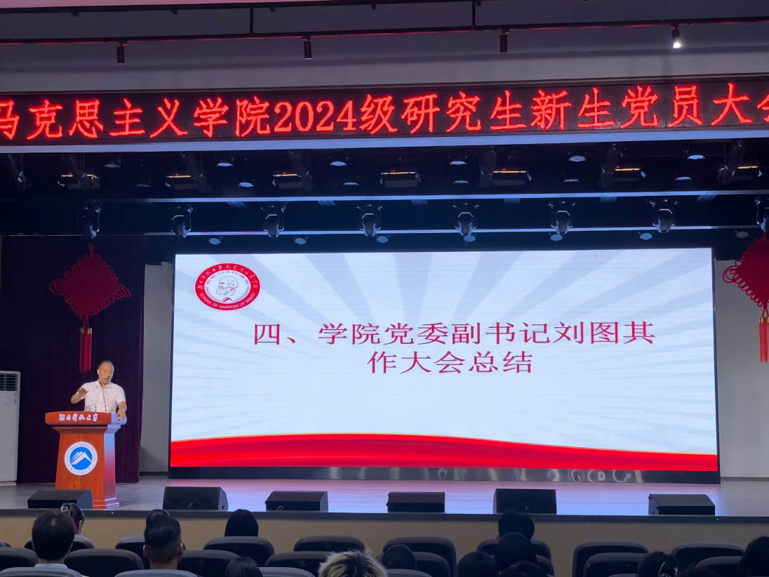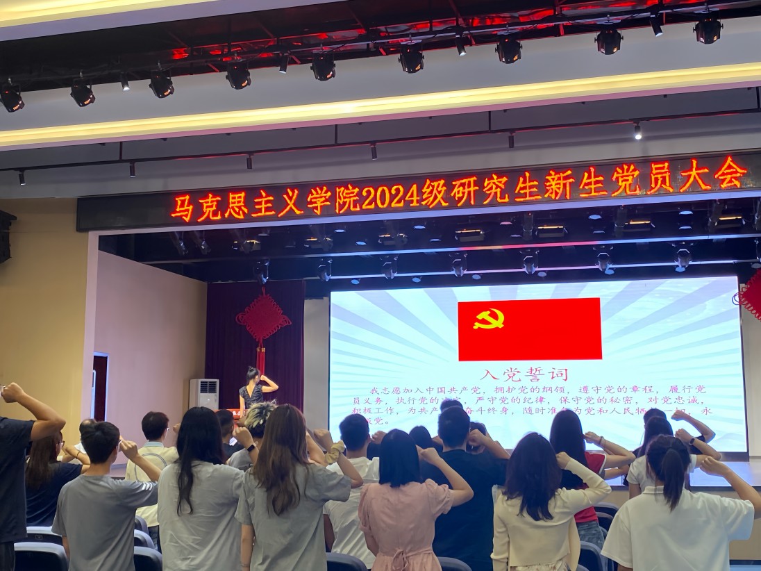 刘图其在讲话中,首先对新生党员的加入表示热烈欢迎,同时对全体新生党员提出三点殷切期望:一是要牢记党员身份,在学习、工作、生活中发挥先锋模范作用;二是要尽快适应研究生学习阶段的特点和节奏,积极寻求学术兴趣点,努力提升理论水平,为顺利完成学业奠定良好基础;三是要关注时事政治,积极参加实践锻炼,努力提升个人综合素质,将个人成长融入国家发展大局,与时代发展同频共振。
