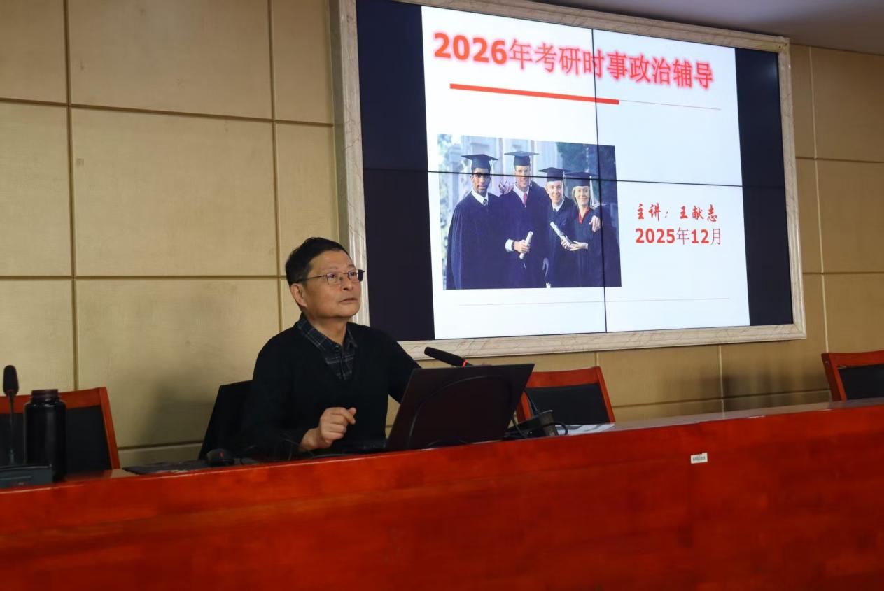 随后,王献志老师围绕考研冲刺阶段的复习策略展开讲解,强调要聚焦时政热点、注重答题规范,并结合本年度国内外重大时事与理论动态,系统梳理考点、剖析命题趋势,助力员工巩固知识体系、提升应试能力。讲座过程中,员工认真聆听、积极互动,认为内容紧扣考纲、重点突出,对冲刺复习具有重要指导意义。