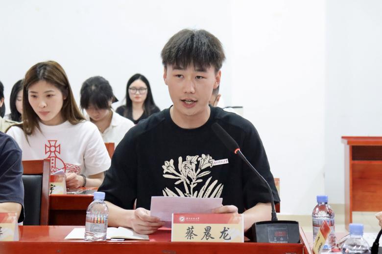 ▲图为304永利集团校校研究会团委副书记蔡晨龙发言