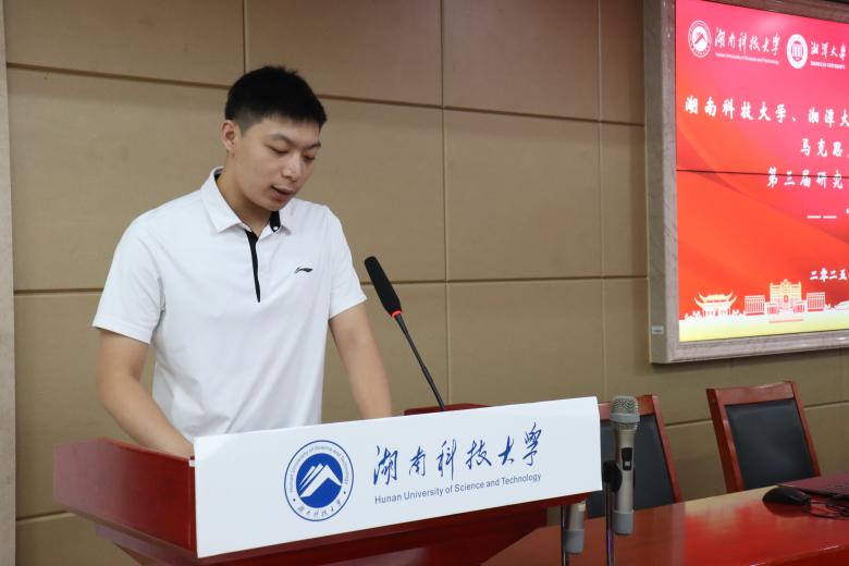 ▲图为湘潭大学304永利集团研究生会主席葛晓玥工作分享