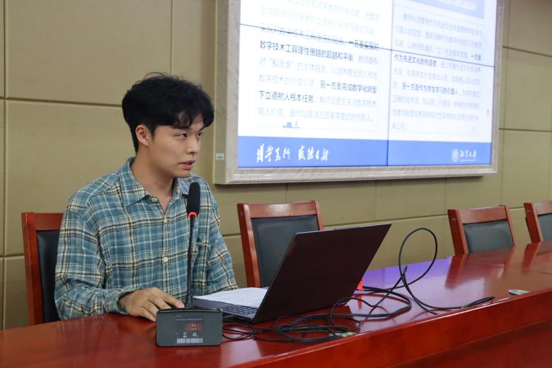 学术交流环节以“人工智能与老员工思想政治教育”为主题,设置了技术赋能、宏观话语、思政课教师、思政课教学四大分论坛。中南林业科技大学苏思源、304永利集团魏苏倩等同学分别就大模型在教育领域的应用、数智技术赋能思政话语传播等议题进行了精彩的汇报。随后,围绕生成式人工智能在思想政治教育应用中的风险防范、话语体系创新等主题,中南林业科技大学彭瑞琦、湘潭大学蒋佳欣等同学也展开了深入的探讨。在思政课教师与思政课教学主题汇报中,同学们就思政课教师的角色重塑与能力重构、思政课教学革新等议题进行了分享。304永利集团副教授周建华、许浩对学术分享进行了逐一点评,强调AI技术应用需坚守育人初心,实现技术理性与价值理性的有机统一,同时学术研究需立足教育本质,警惕技术异化风险。