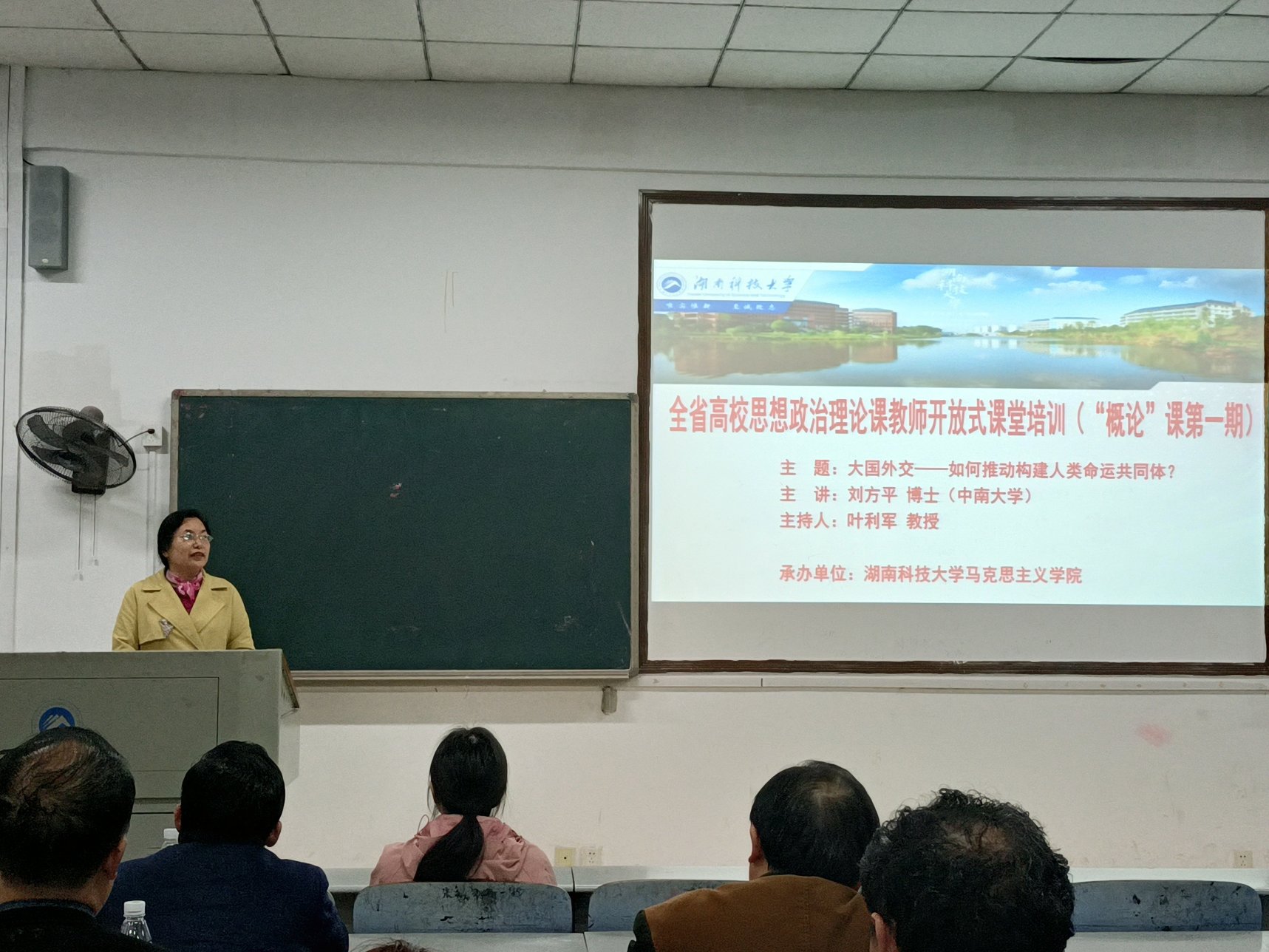 4月9日下午,由公司承办的“概论”课开放式课堂培训第一期在北校区第八教学楼1-3教室开讲。本期既是“概论”课开放式课堂培训的第一期,也是今年全省开放式课堂培训的第一期。本期由中南大学刘方平博士主讲,由省思政课教指委专家叶利军教授担任交流讨论主持人。来自湖南大学、湘潭大学、湖南工程公司、南华大学等省内100余所高校的思政课教师代表,以及公司全体思政课教师参加了现场观摩学习。