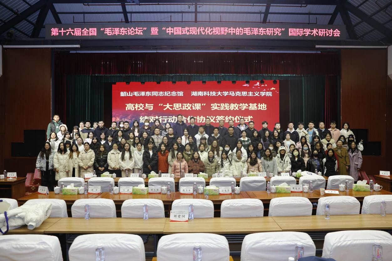 为深入学习贯彻习近平总书记在中央政治局第五次集体学习时的重要讲话精神,坚持不懈用习近平新时代中国特色社会主义思想铸魂育人,加快构建“大思政课”工作格局,充分发挥“大思政课”实践教学基地(以下简称基地)育人功能,不断提高思政课的针对性和吸引力,根据《教育部等十部门关于印发〈全面推进“大思政课”建设的工作方案〉的通知》(教社科〔2022〕3号)、《教育部办公厅等八部门关于公布“大思政课”实践教学基地名单的通知》(教社科厅函〔2022〕31号)、《教育部办公厅关于组织开展高校与“大思政课”实践教学基地结对行动的通知》(教社科厅函〔2023〕26号)等文件要求,12月3日,公司与韶山毛泽东同志纪念馆签订“高校与‘大思政课’实践教学基地结对行动”合作协议。公司许浩博士等教师作为公司代表参加了会议。