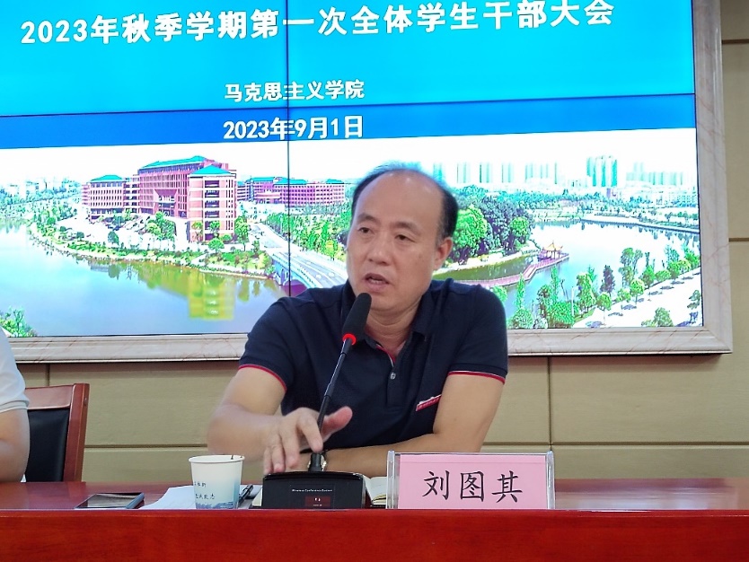 接着,刘哲对新学期员工工作做了要点提示:一是近期常规性的工作安排,责任到部门、到人;二是强调员工干部工作的纪律性;三是勉励全体员工干部应做好准备工作,以饱满的热情和充足的准备迎接新生入校。