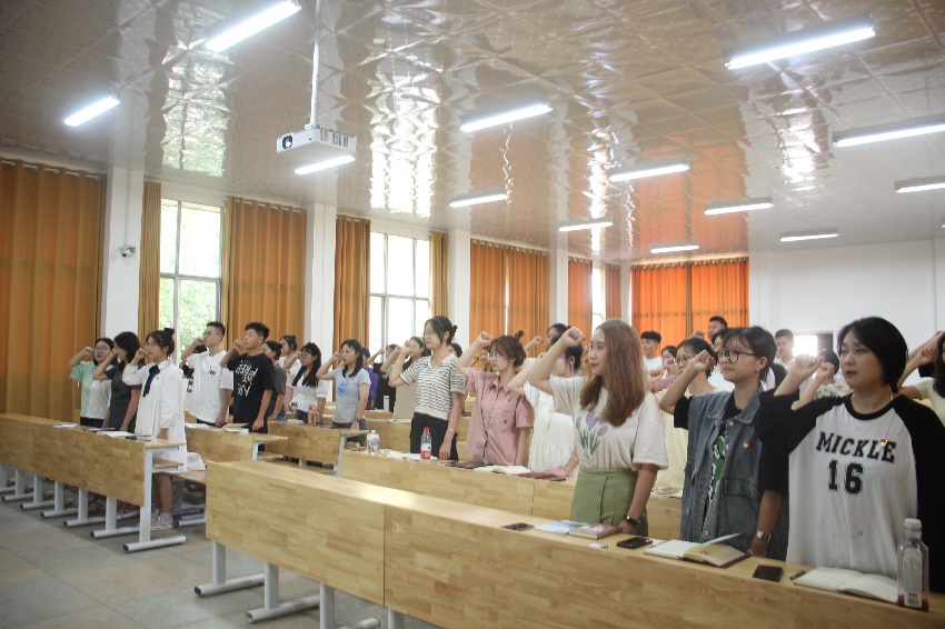 首先,重温入党誓词。全体党员以饱满的热情、昂扬的斗志表达出作为共产党员的自豪感与使命感,抒发出对党忠诚的坚强意志和坚定信念。