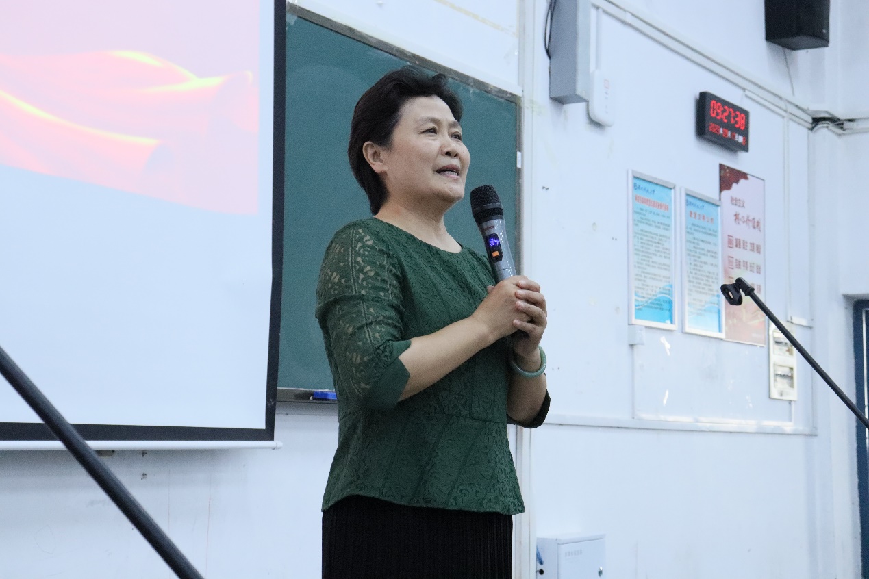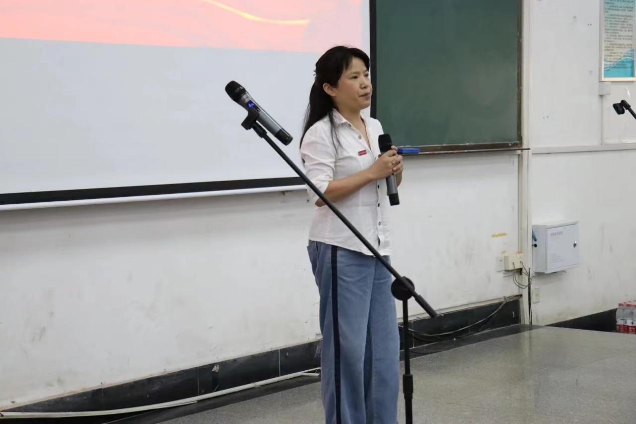 优秀教师代表丁桂馨发言。以幽默诙谐的语言作为开场白,迅速拉近了与同学们之间的距离。她结合自身经历指出,无论起点如何,只要不懈奋斗提升自我,同样都能够攀得高峰,收获满满。