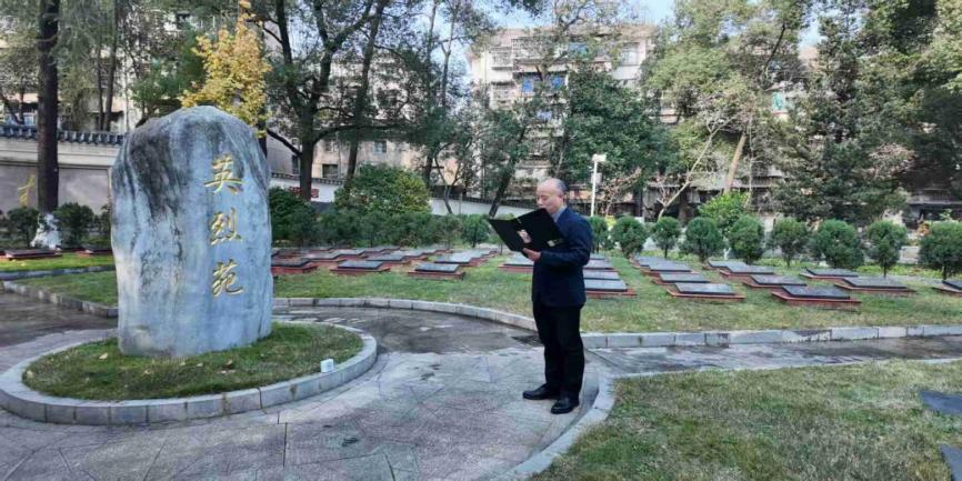 活动伊始,员工代表施俊宏向烈士纪念碑鞠躬致敬,并宣布公祭仪式正式启动。伴随着庄严的旋律,全体师生肃立奏唱《中华人民共和国国歌》,表达对祖国的赤诚与对先烈的崇高敬意。随后,全场默哀致敬,深切缅怀革命先烈为民族独立、人民解放作出的不朽贡献,现场氛围庄重肃穆。