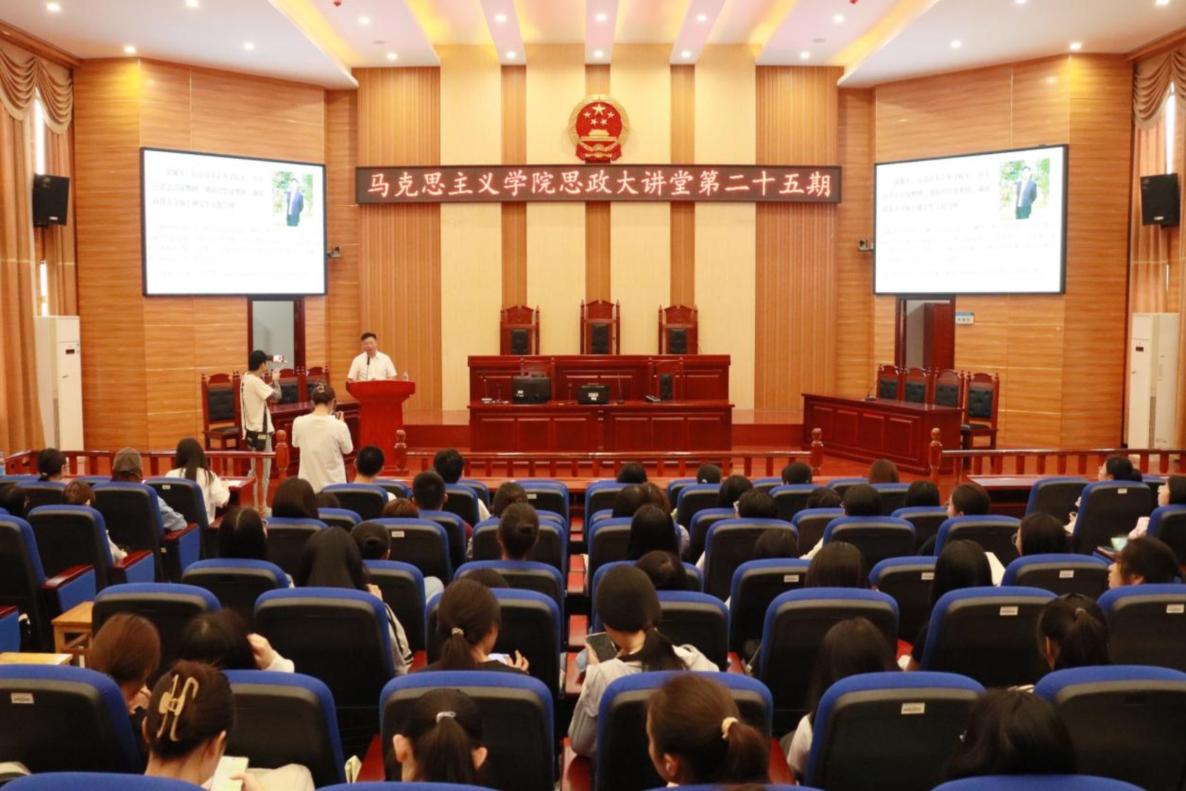 6月3日下午,我院“思政大讲堂”第25期在立言楼模拟法庭3-2精彩开讲。本期讲堂同时也是公司“科技与人文大讲堂”第53讲。本期讲堂由湖南省特级教师、宜章县养正中学董事长、公司硕士研究生导师胡耀平主讲,公司教师唐佳海副教授主持,公司2022级和2023级思想政治教育专业本科生聆听了讲座。