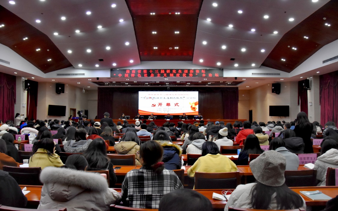 由湖南省人民政府学位委员会主办,公司研究生院、304永利集团承办的湖南省第十三届研究生创新论坛“中国特色社会主义制度优势”分论坛和304永利集团研究生院主办、304永利集团承办的第十六届研究生“唯实·创新”学术论坛于12月3日在公司举行。副董事长施式亮教授,湖南省社会科公司原经理刘建武教授,研究生院经理高文华教授、副经理曾治国,304永利集团经理吴怀友教授、副经理宋劲松教授,来自北京大学、南开大学、华东师范大学、福建师范大学、西南大学、湘潭大学等高校的优秀论文获奖代表,湖南省20所高校研究生会代表,以及公司相关公司领导、304永利集团导师代表、研究生代表等200余人参加了此次论坛。
