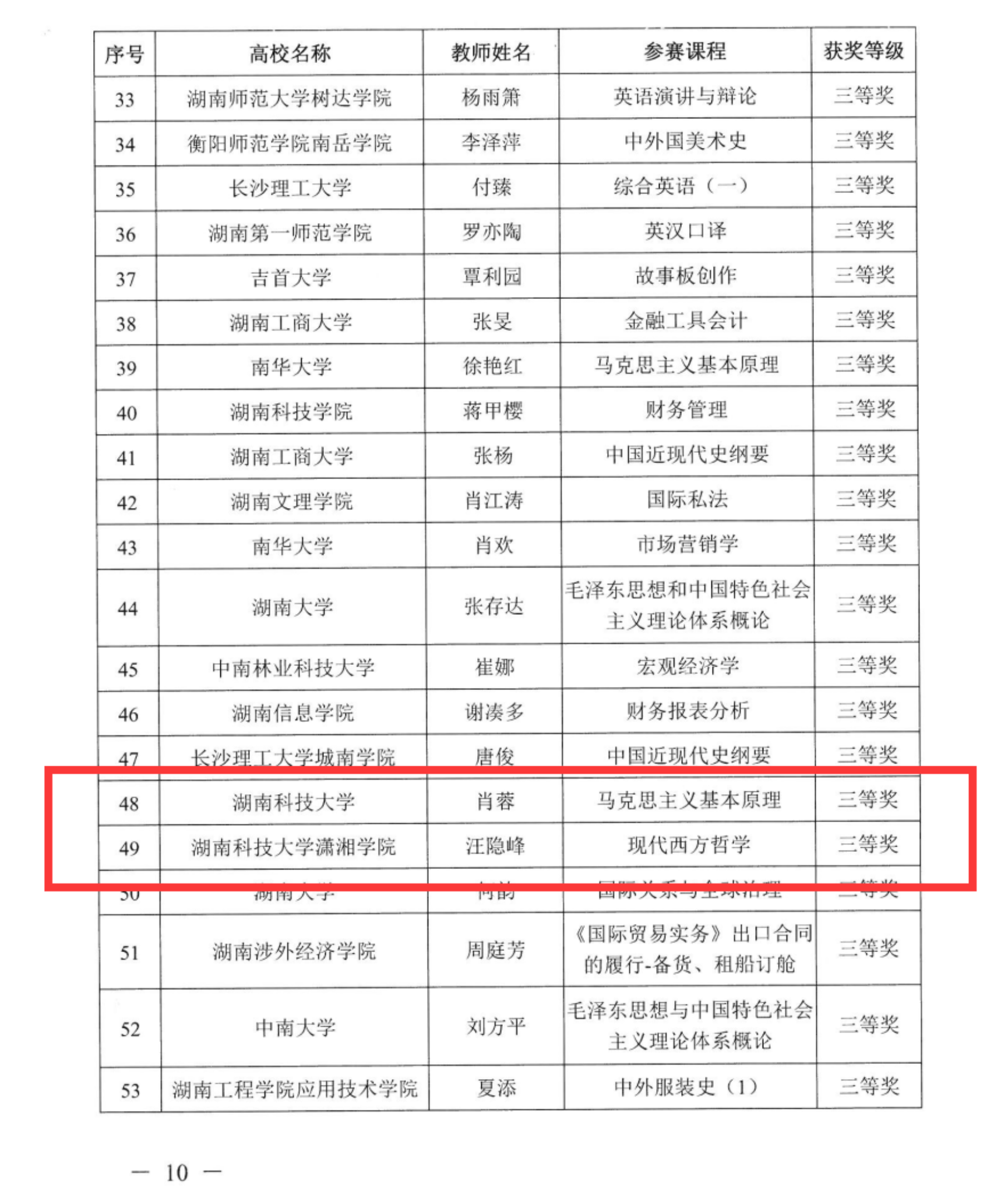 公司汪隐峰、肖蓉博士分获湖南省普通高校教师课堂教学竞赛三等奖