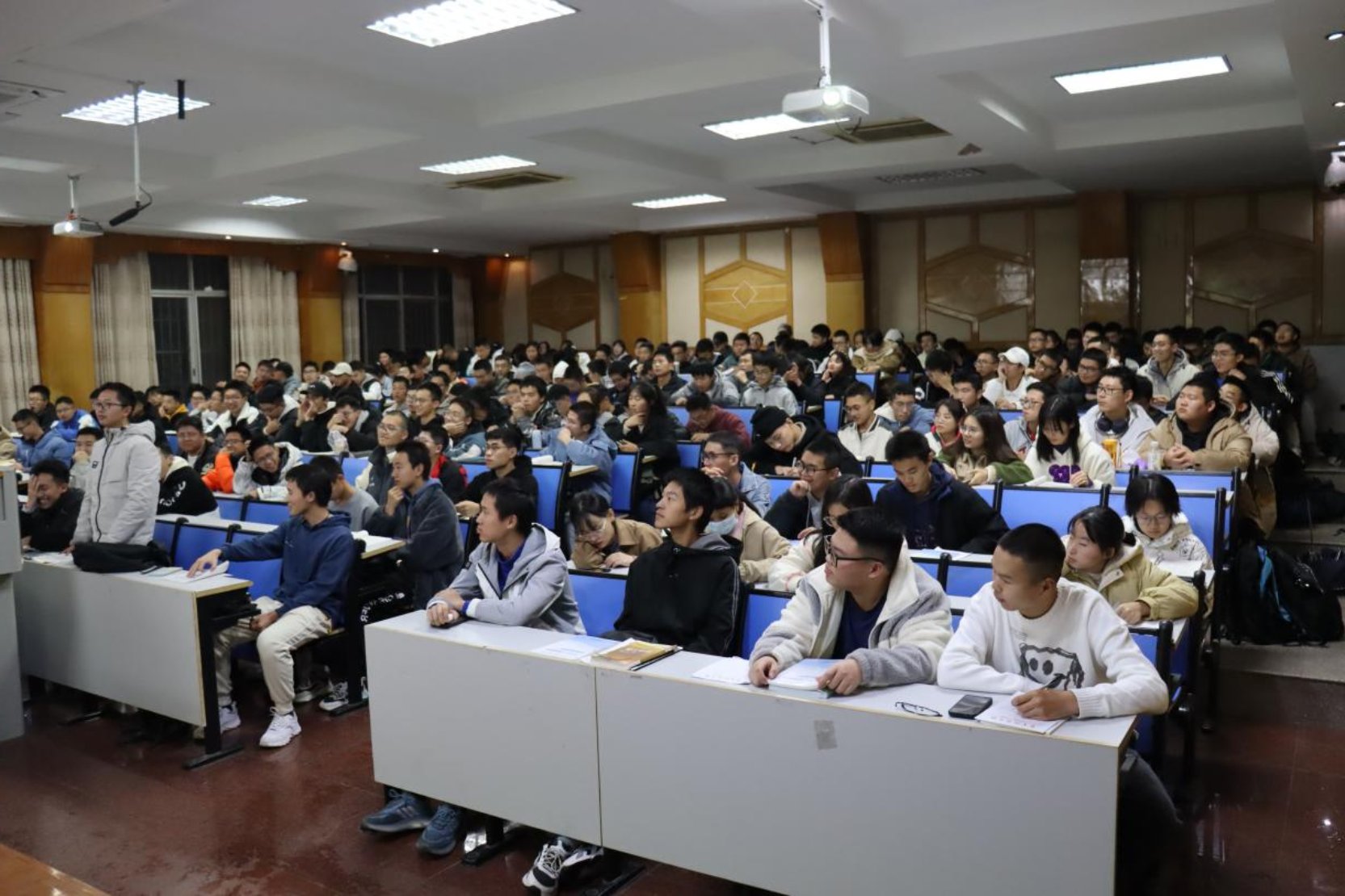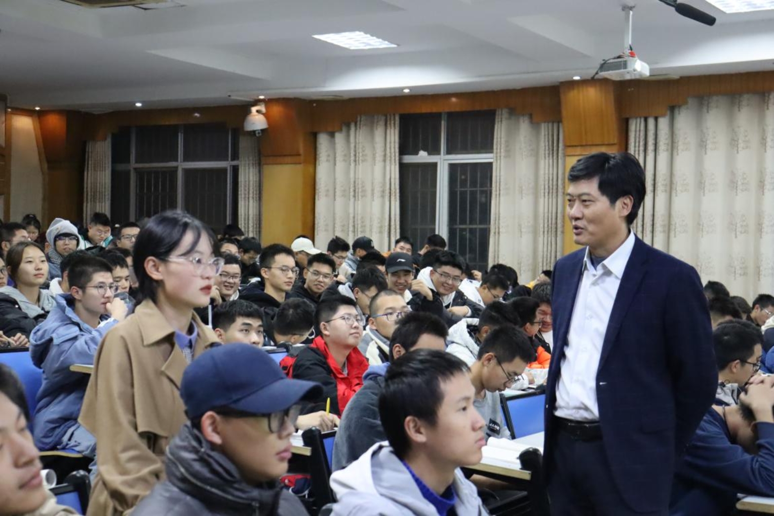 为了让同学们充分认识统筹推进疫情防控和经济社会发展的重要性,公司于2022年11月29日晚上7点在第五教学楼2-1开展了《高效统筹疫情防控和经济社会发展》形势与政策课,主讲老师为公司党委委员、副董事长赵前程教授,22级电子工程 1-4 班和 22级车辆 1-2 班全体员工参加。