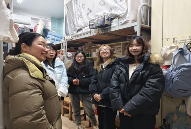 为快速了解公司员工返校情况和思想动态,帮助大家尽快适应、融入新学期。全体院领导、班主任、辅导员在公司党委书记刘正妙、经理唐小芹的带领下,于2月16日、18日,分别于深入员工宿舍,关怀返校学子,并对新学期的学习风貌、宿舍内务、安全隐患进行第一轮巡查。