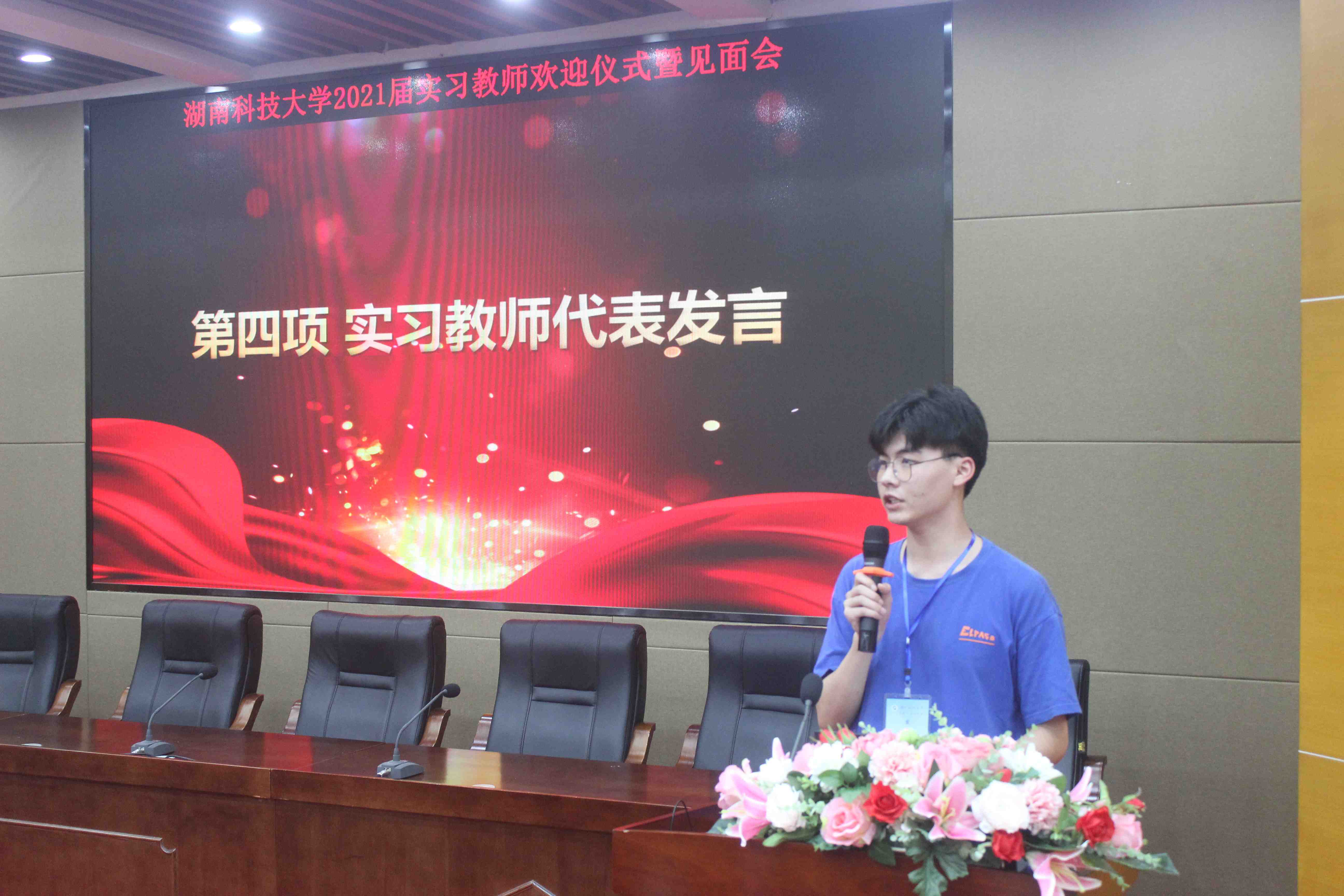 在欢迎仪式上,实习队带队老师吕开武对新翰高级中学的大力支持和热情接待表示衷心的感谢,并对实习教师提出具体要求。实习教师宋楠代表20位实习生发言,感谢新翰高级中学为实习队提供的良好条件和工作环境,表示一定要端正态度、服从领导、遵章守纪、虚心求教,圆满地完成各项教育实习任务。