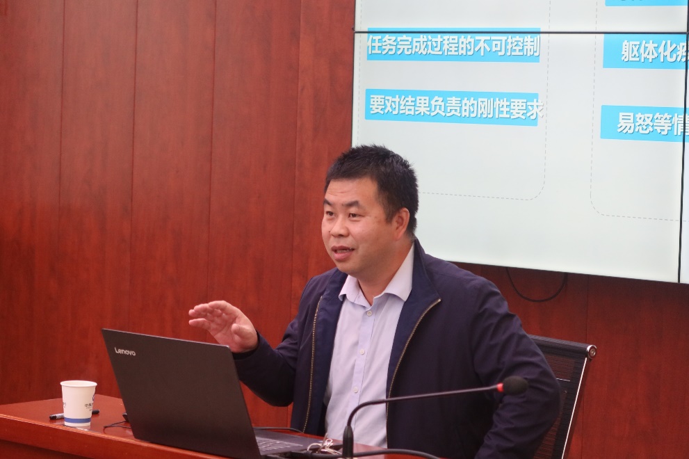 在会上,彭立春老师为与会党员干部作了题为《把挫折变存折》的宣讲,从表现、诱因、提升策略三个维度向与会党员干部探讨了心理健康素养提升策略,脉络清晰、生动实用。他指出,基层干部心理压力主要表现为无力感、疲劳感、倦怠感,工作担子重、社会压力大、人际关系烦、家庭矛盾多是其重要诱因。他鼓励与会党员干部正确面对心理压力,勇于从“希望”“效能”“韧性”“乐观”四方面进行训练,提升自己的心理资本。