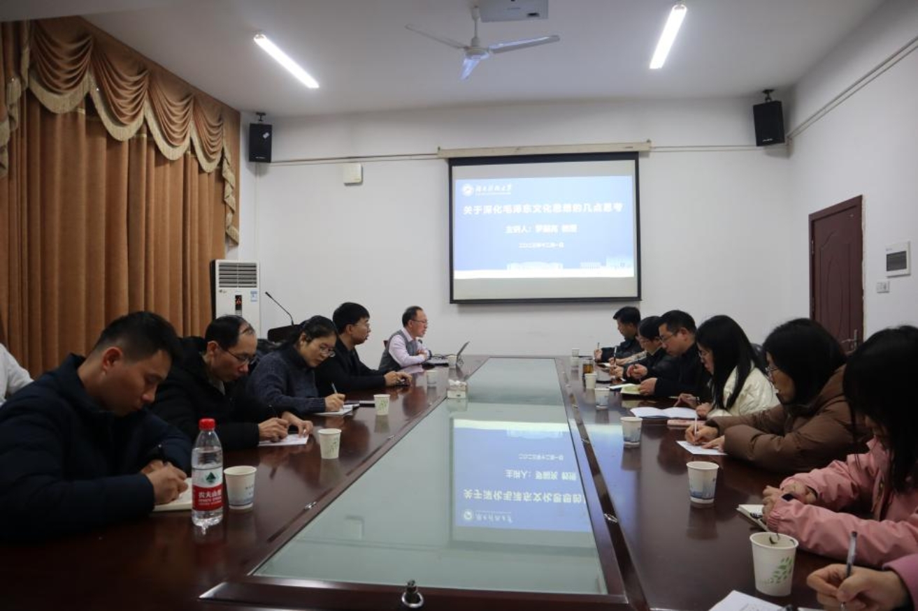 12月1日晚,全国毛泽东哲学思想研究会理事、中国毛泽东诗词研究会理事、中山大学罗嗣亮教授在立言楼A529为公司师生作了题为“关于深化毛泽东文化思想研究的几点思考”的学术讲座。讲座由公司党委书记刘正妙教授主持。